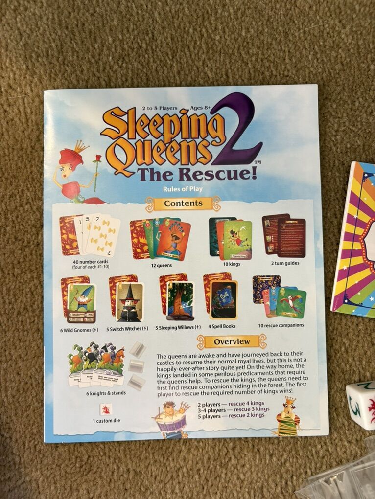 COMPLETE Sleeping Queens 2: The Rescue! 2-5 players, ages 8+. Gamewright, 2022. Complete, no missing pieces. Excellent condition. Text only. Cash or Venmo.