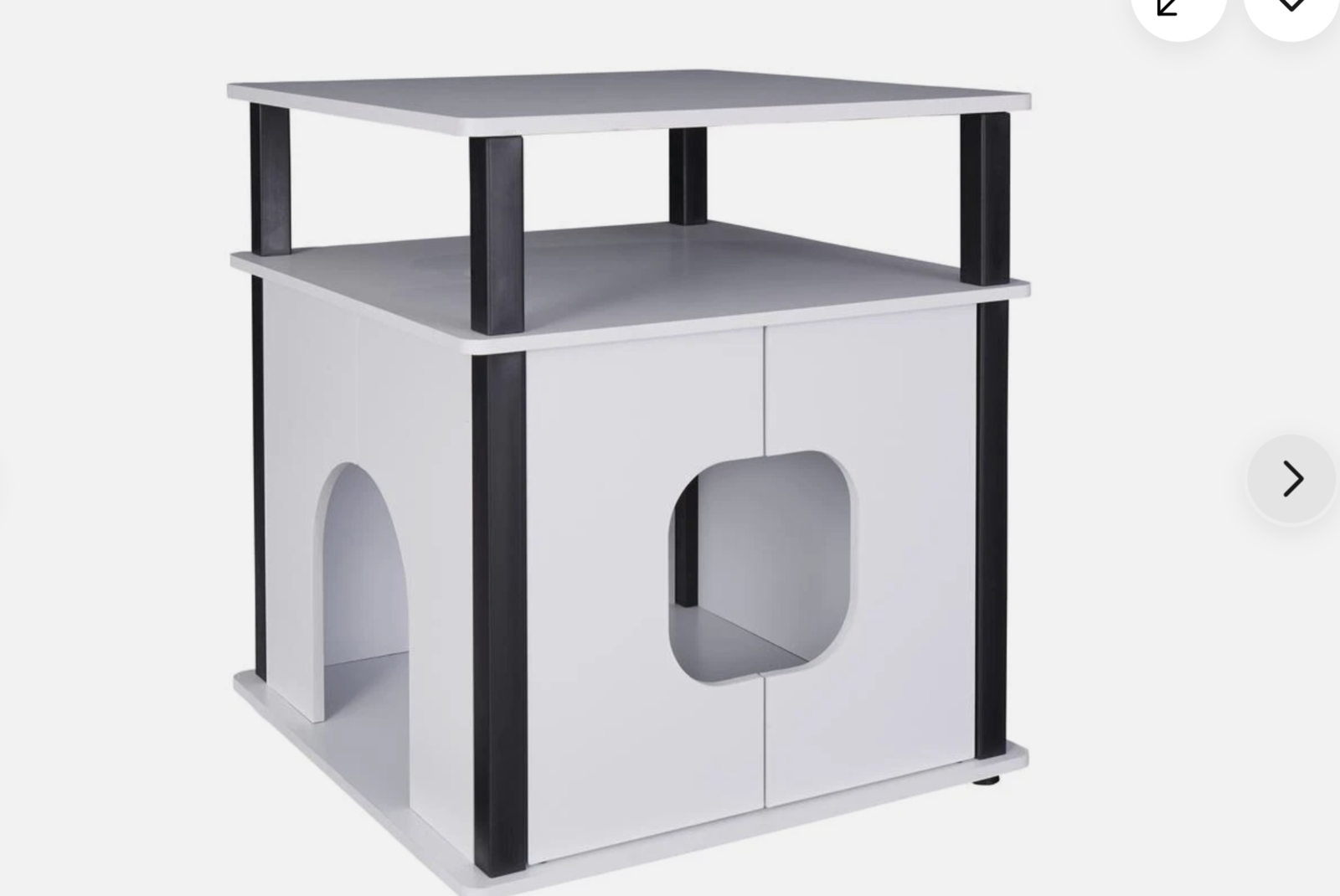 Brand new in box, unassembled, Geohome cat pet bedside table, night stand, accent tableOur Itsy Pet End Table makes a cat play area look stylish. Looking for function? Conceal your cat's litter box behind the doors which provide easy access when cleaning is necessary. Or use the spacious interior for storage. Black finished supports add some contrast and color to this piece. This table is very versatile and can be uséd as an end table, bedside table, or just an accent piece that will add style and function to any room. Spacious interior area: 20.5" x 20.25" x 17" H Open storage shelf Contrasting black finished supports
