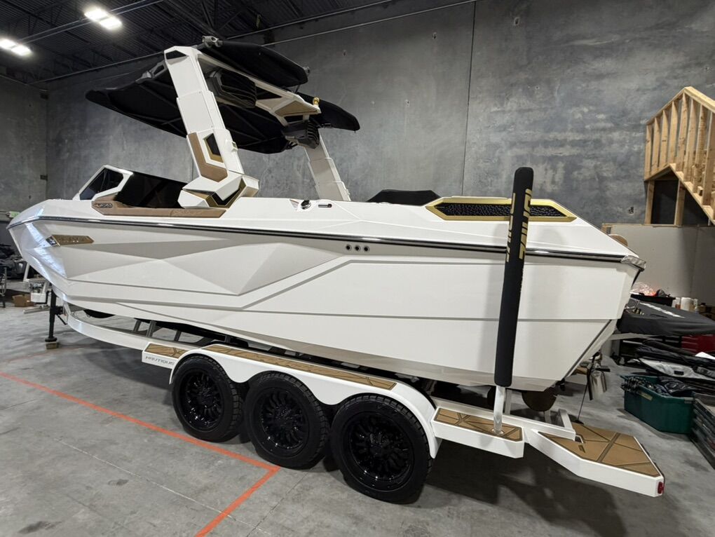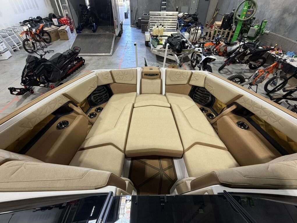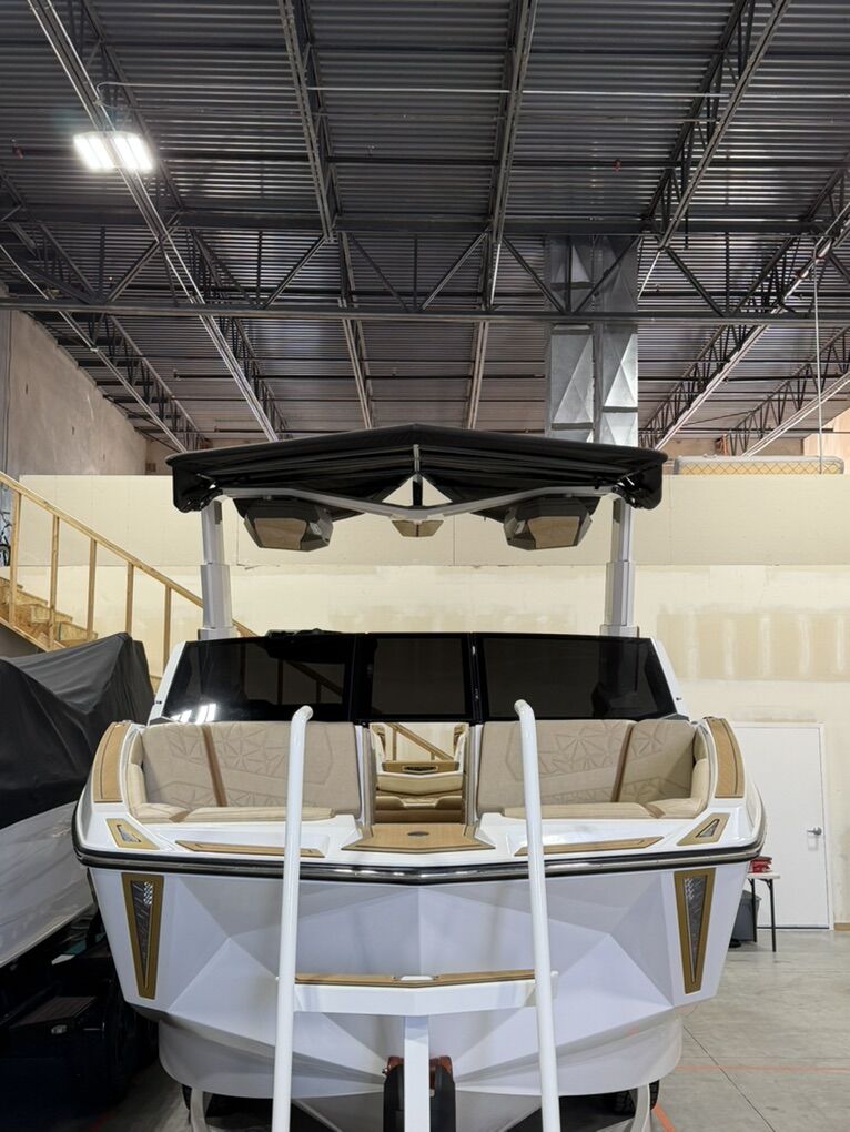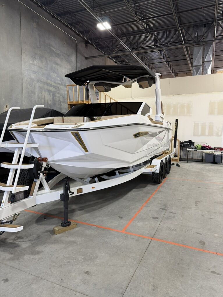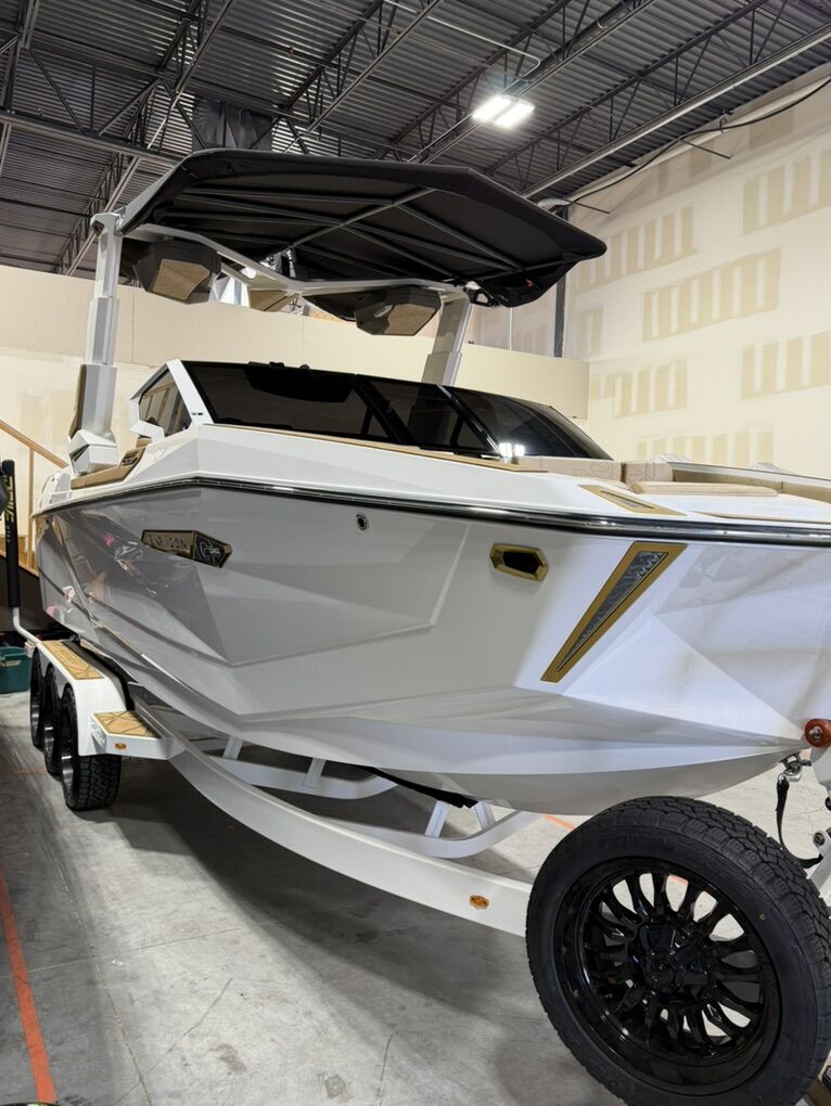 2025 G25 Paragon with 46 hours. This boat has the best interior color combo - Sahara Sand and Mocha accents in the Lux Touch material. The all white looks stunning on the water. All boards are stored in the rear transom without having the board racks - game changer!! 630 hp and rear thruster. Boat is stored in a climate controlled garage. Tinted windows and the boat was ceramic coated. This is the best surf boat on the market. Wheels on the trailer will be substituted for factory 18”
