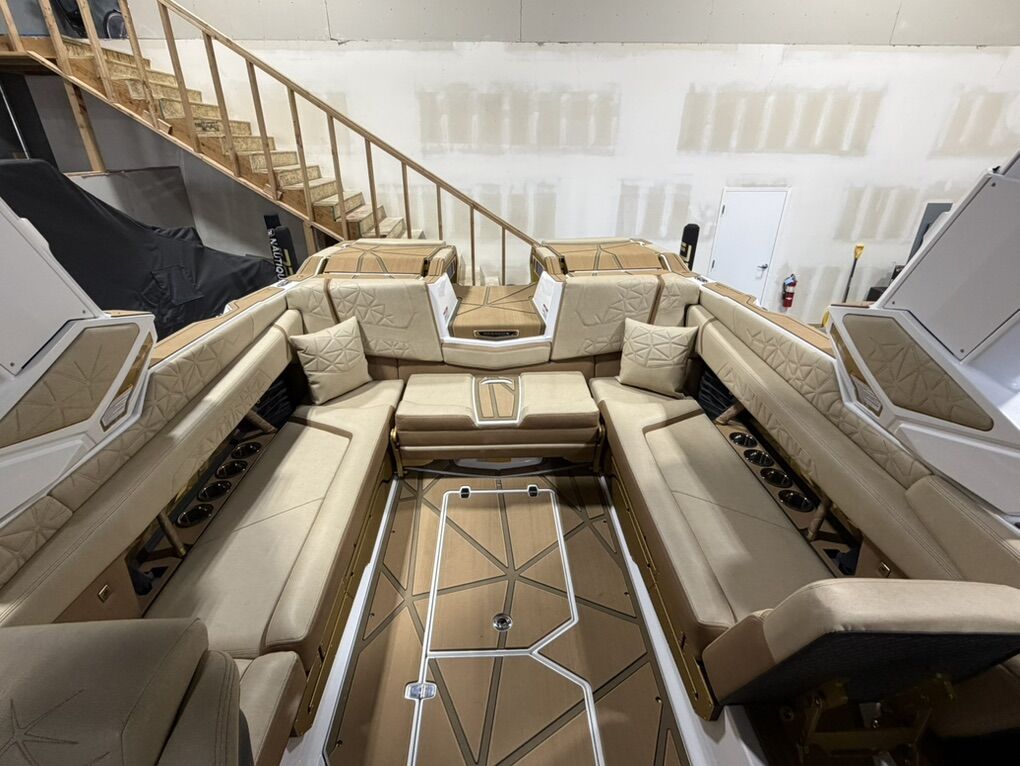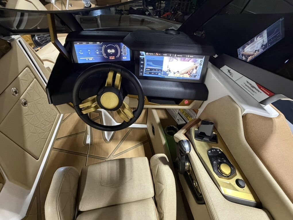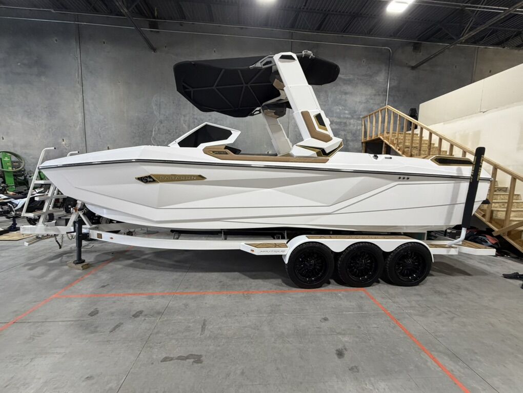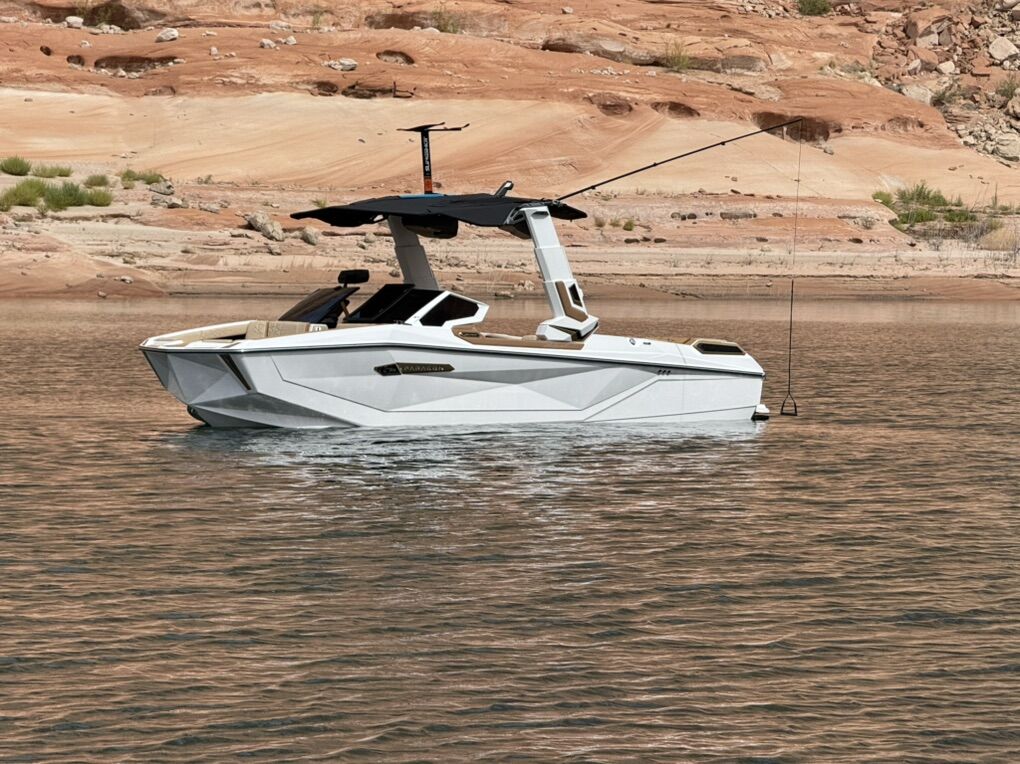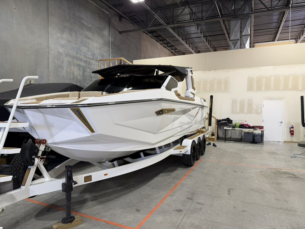 2025 G25 Paragon with 46 hours. This boat has the best interior color combo - Sahara Sand and Mocha accents in the Lux Touch material. The all white looks stunning on the water. All boards are stored in the rear transom without having the board racks - game changer!! 630 hp and rear thruster. Boat is stored in a climate controlled garage. Tinted windows and the boat was ceramic coated. This is the best surf boat on the market. Wheels on the trailer will be substituted for factory 18”