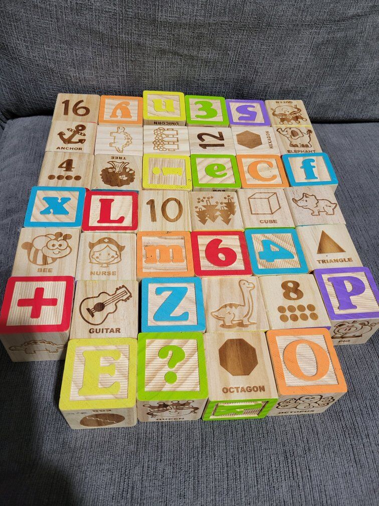 VenmoThere are 40 blocks. They measure approx 1.75" cubed. They have letters, number, shapes, pictures, symbols, etc.. Good quality, smooth and defined. Selling all together