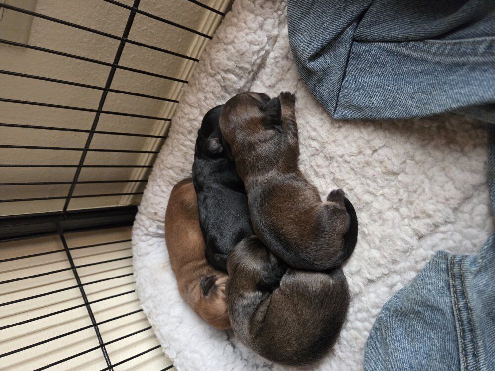 VenmoAvailable in March! SIX WEEKS OLD in the photos. VACCINATED They are long hair! They will be dad's size Familiar with puppy pads Well socialized every day, multiple times a day Eating solids/weaning on goat milk replacement. Mom is short hair mini (7 or 8lbs) Dad is long hair regular (13 or 15lbs) Asking $1200 $200 to "RESERVE", goes towards payment.