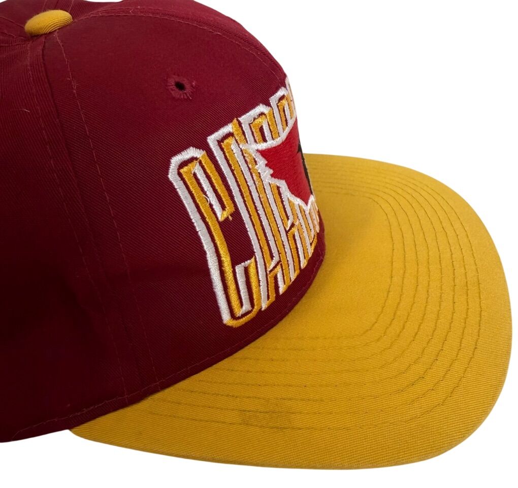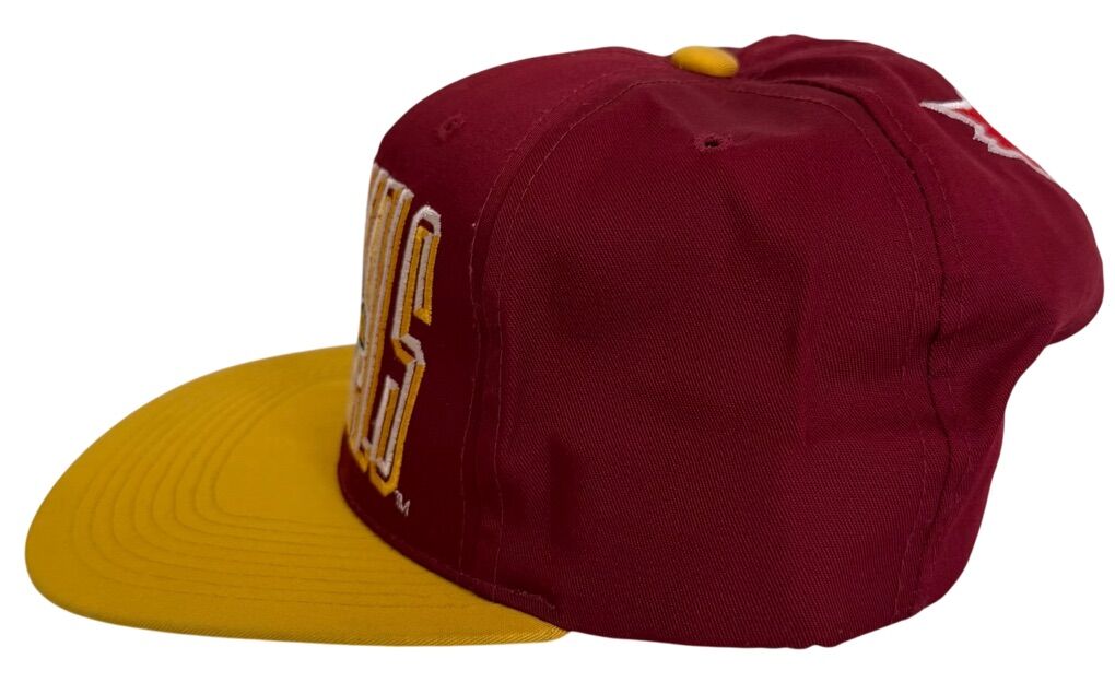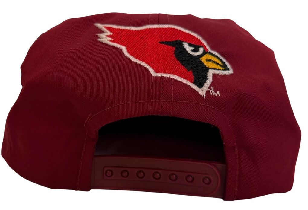 Hat has a small discoloration on brim, picture provided. The Vintage 1990’s Arizona Cardinals Flat Brim Large Script Snapback by ADJ Team NFL is an officially licensed cap that pays homage to the National Football League team. This red snapback features the Arizona Cardinals team logo and is suitable for both men and women. Perfect for football fans looking to represent their favorite team in style during the regular season.