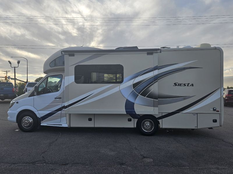 -GVWR: 11,030 lbs **Check www.ssautobrokers.com (http://www.ssautobrokers.com) for more photos and info! Why are our RV's priced much less than others? We are a 30yr small family owned and operated dealership. We own our inventory, which means we do not need to make as much of a profit as the big dealers. Low overhead = low prices! All of our RVs are clean title and in great condition! Don't let the price fool you. Take advantage of these low prices and come check us out today! 2024 Quality Dealer of the Year! 27 years in business! We are very honored to be voted Utah's Quality Dealer of the Year! This is a reflection of ethical business and top quality service to our customers! We look forward to showing everyone why we were voted Quality Dealer of the Year! Buying from a broker with NO freight/fuel/set up fees and low overhead = LOWER prices! Having the best pricing in the industry, our pricing is the SAME for RETAIL CONSUMERS & DEALERS! The 2018 Thor Siesta Sprinter 24SJ delivers the perfect blend of maneuverability and comfort. Built on a Mercedes-Benz Sprinter 3500 chassis with a 3.0 L turbocharged V6 diesel engine producing 188 horsepower and 325 lb-ft of torque, it provides responsive, efficient performance. At about 26 feet long, this compact Class C is easy to drive and park, yet spacious inside—featuring a single slide-out, sleeping accommodations for up to six, and a well-appointed interior with kitchen, full bathroom, and living area. With durable construction, modern amenities, and a long 170-inch wheelbase, the Siesta 24SJ makes every journey feel like home-on-the-go. We are located at 2070 Wall Ave, Ogden UT 84401. For more information please contact: Cameron 801-645-7880, Kobe 801-452-1228, Kooper 801-710-0378, or our Sales Dept at 801-334-6688. We have the best financing and customer service available. Visit our website at www.ssautobrokers.com (http://www.ssautobrokers.com) to see all of our inventory including cars/trucks/bikes/powersports/RV's/boats & more! WE TAKE ALMOST ANYTHING IN ON TRADE! DLR #1747 Model: 2018 Thor Siesta Sprinter 24SJ Class: Class C motorhome Chassis: Mercedes-Benz Sprinter 3500 Engine: 3.0 L turbo V6 diesel Horsepower: 188 hp @ 3,800 rpm Torque: 325 lb-ft @ 1,400 rpm Transmission: 5-speed automatic with overdrive Drive Type: 4x2 (RWD) Length: 26 ft (312 in) Width: 7.5 ft (90 in) Height: 10.8 ft (130 in) Interior Height: 6.7 ft (80 in) Wheelbase: 170 in (4318 mm) GVWR: 11,030 lbs Towing Capacity: 5,000 lbs Fuel Capacity: 26.4 gal Fresh Water: 40 gal Gray Water: 35 gal Black Water: 35 gal Propane Capacity: 16 gal (68 lbs) Number of Slide-Outs: 1 power slide Awning: 15-ft power awning Sleeping Capacity: Up to 6 (trim-specific) Construction: Aluminum cage with fiberglass sidewalls Exterior Features: Armless LED awning, Roto-cast storage, power entry steps Living Amenities: Kitchen, full bath, swivel cab seats, backup camera