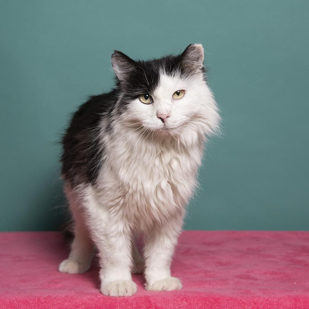 Bryce is a bundle of love rolled into an adorable package of fluff! This perfect guy is gentle, quiet, and very sweet. Bryce is truly the most handsome man in the world. He is extremely loving, and he just wants to be loved! Bryce is unassuming and is content to sit next to you while you brush him. He loves to play with wand toys and then curl up in your lap for love. He is on a special diet, but he has a great appetite and is doing well. If you want a true -marshmallow - of a kitty, Bryce is perfect! He would be an absolute delightful addition to your life!