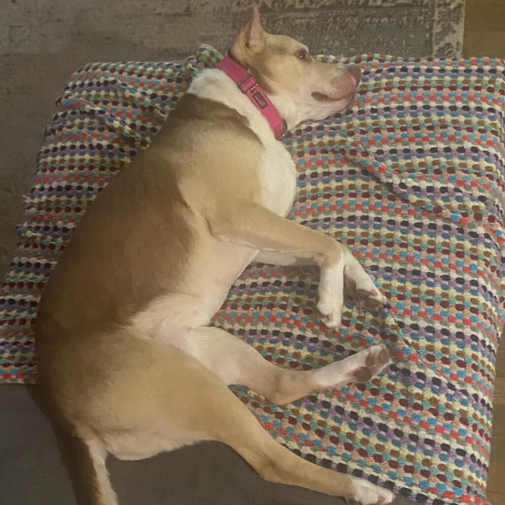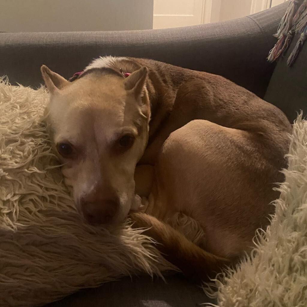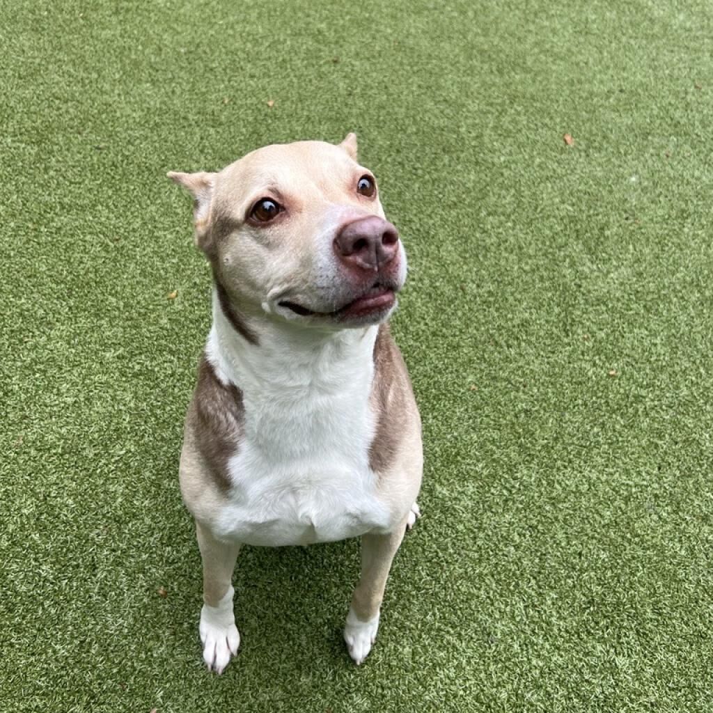Meet Zizzo, the vibrant Pitbull mix who's all about balancing relaxation with adventure! While she enjoys lounging around, Zizzo lights up at the prospect of a good walk and meeting new friends. With her playful energy and friendly demeanor, she's the perfect companion for both laid-back moments and exciting outings. Ready to bring warmth and excitement to your life, Zizzo is eager to be your loyal sidekick through every adventure.