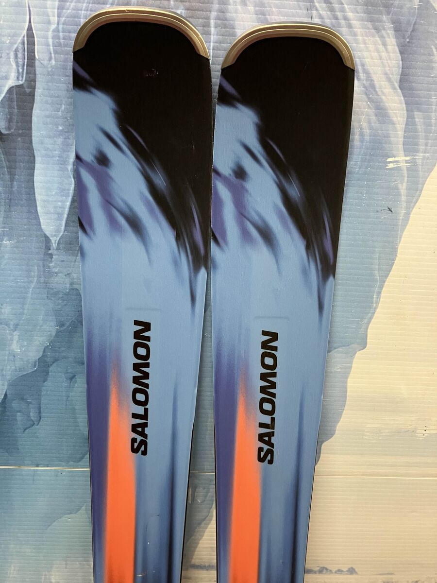 The Salomon Stance 84 is a lively and playful all-mountain ski that balances agility with stability, designed to serve as a versatile one-quiver option for intermediate to advanced skiers who primarily stick to groomed terrain but appreciate the ability to venture into light off-piste, choppy snow, or moguls. Featuring a poplar wood core reinforced with a Titanal layer, all-mountain rocker, and sandwich sidewalls, it delivers impressive edge grip on hardpack while remaining approachable and forgiving. Reviewers highlight its quick edge-to-edge response and fun character, noting it shines in medium-speed turns and offers excellent value for its price point. Rental version making topsheet and base more durable along with a fully adjustable binding!