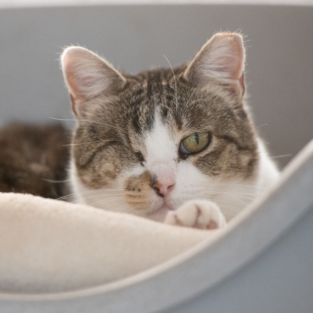 Meet Kia! The fierce and independent guardian of the great outdoors. With one sharp eye on the world, she sees everything and trusts no one (especially the two leggeds). Preferring the rustle of leaves to the chatter of people, this adventurous feline thrives where the wild things are. Perhaps you are in need of a "working cat" for your barn, warehouse, or winery. Kia is your gal in exchange for food and a warm place to stay.