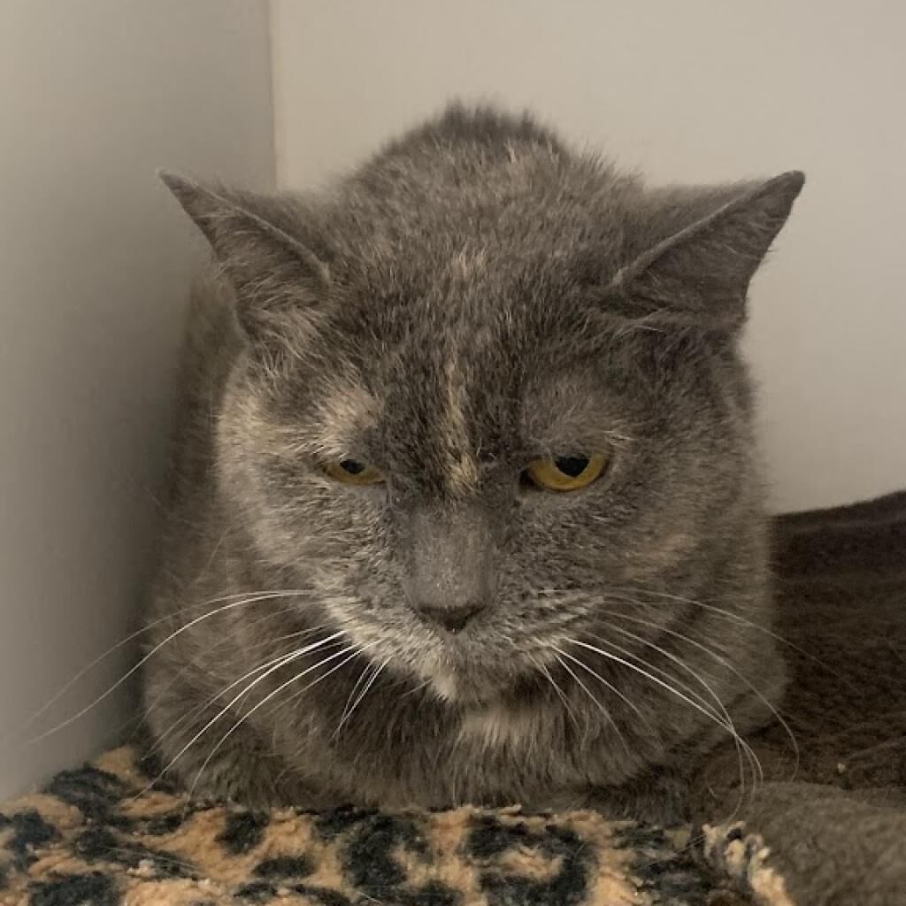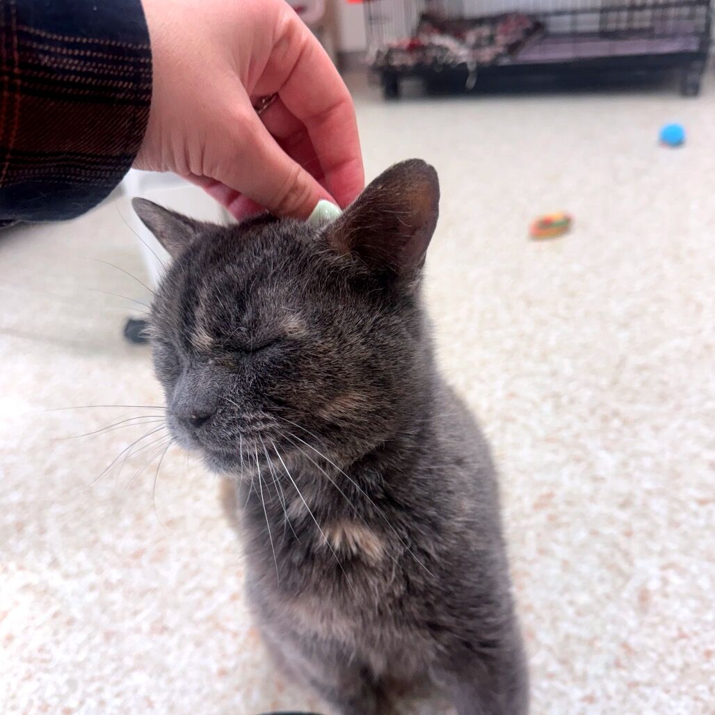 Meet Cuyahoga, the delightful dilute tortie cat with a penchant for snacks and head pets. Cuyahoga adores lounging around with her favorite human companions, enjoying the simple pleasures of relaxation and affection. With her unique tortoiseshell coat and sweet demeanor, Cuyahoga is sure to steal your heart. Whether she's indulging in treats or seeking out gentle head pets, her presence brings comfort and joy to every moment. With Cuyahoga by your side, you'll experience the true bliss of feline companionship. She's ready to be your loyal companion, offering endless love and companionship as you lounge together and enjoy each other's company.