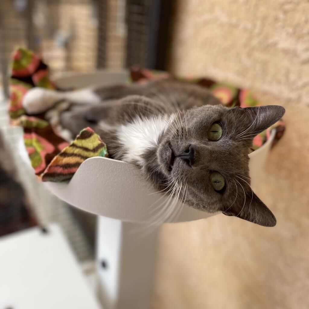 Petite, spunky, and full of personality—Ettie is the kind of cat who makes every room brighter. The moment you walk in, she’s there to greet you, tail high and eyes sparkling, ready for attention (and maybe a snack). Ettie is no ordinary cat—she’s a talented acrobat who loves climbing onto shoulders, zooming around, and even going for stroller rides. Playful and adventurous, she’s always finding new ways to make life fun. Born with Manx Syndrome, Ettie does need a little extra care: her bladder must be expressed twice daily. But don’t let that scare you—she doesn’t let it slow her down, and the team at Best Friends will happily teach you everything you need to know. What you’ll gain in return is a firecracker of a companion who will fill your days with joy, laughter, and love. Ettie is proof that resilience can be playful, and that every cat deserves a chance to shine. Could you be the one to give her the home she’s waiting for?