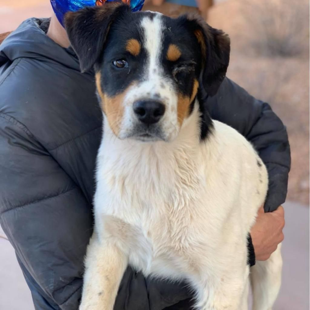 Meet Eyesha – the sweet, one-of-a-kind pup with a charming smile and a signature wink! This affectionate girl is full of personality and love to give. She’s smart, playful, and always eager for attention from her human friends. Eyesha has lived with children in previous homes and is known for her fun-loving, social nature with people. Eyesha gets along well with most canine companions as well, and often enjoys fun play and chase sessions! Her missing eye, the result of an old injury as a puppy, doesn’t slow her down one bit — in fact, it only adds to her unique charm! If you’re looking for a loyal, playful, and people-loving pup, Eyesha might just be your perfect match. Fill out an application today to meet her!