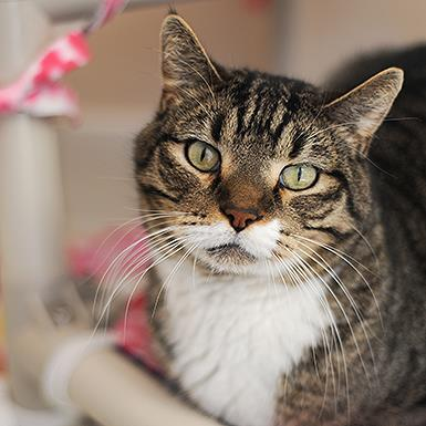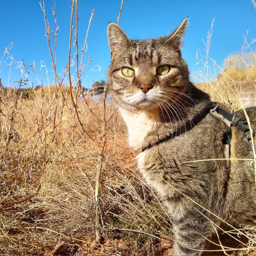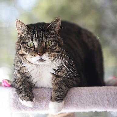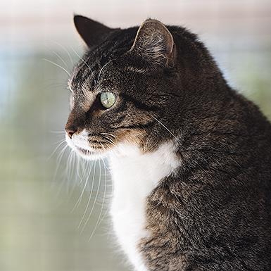 Do you want a sociable, loveable buddy that adores people and loves to live on the wild side? Look no further than Bruce! Bruce is a favorite around the sanctuary and can often be found wandering the halls at Cat Headquarters greeting visitors and volunteers. In the warmer months, Bruce loves to walk around the sanctuary on his harness and roll in the sand. Bruce has never met a person he didn't like! He also loves stroller rides, being brushed, and has a thing for catnip. And while he loves people, Bruce isn't all that crazy about other cats, so his best home would be with a person or family all his own. He arrived declawed, and is toothless. If you are looking for a best friend ready to greet you at the end of each day and wants nothing more than to curl up next to you, Bruce is perfect for you!