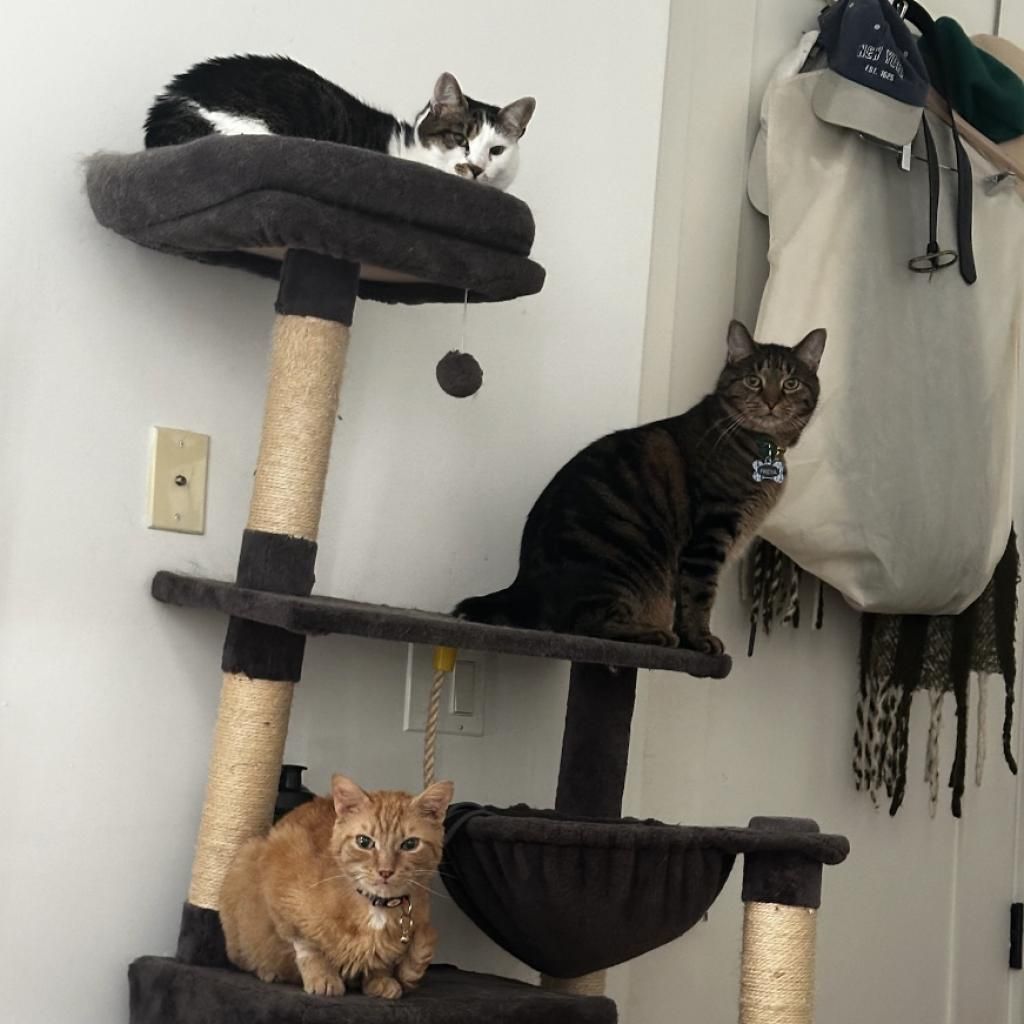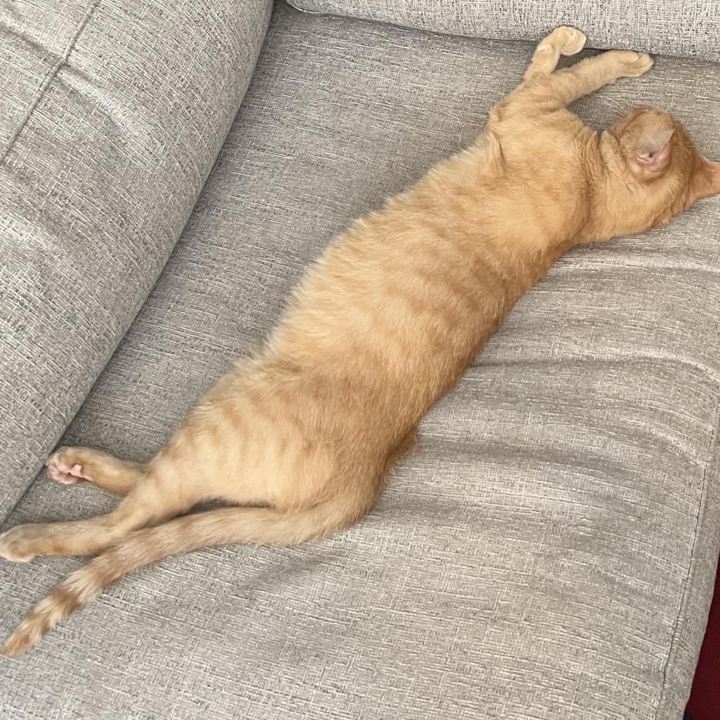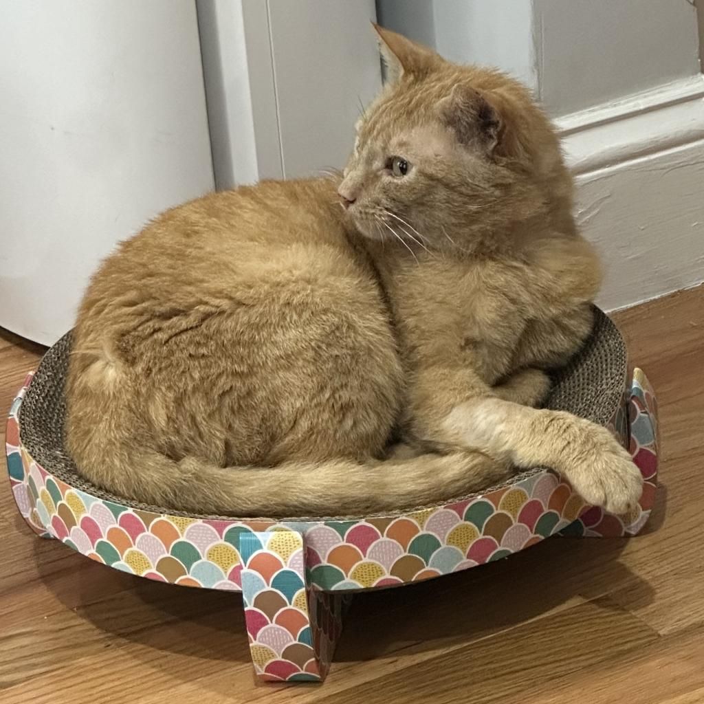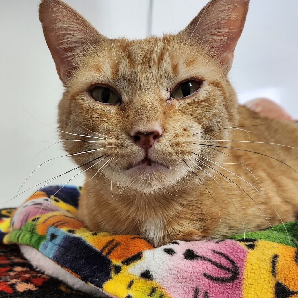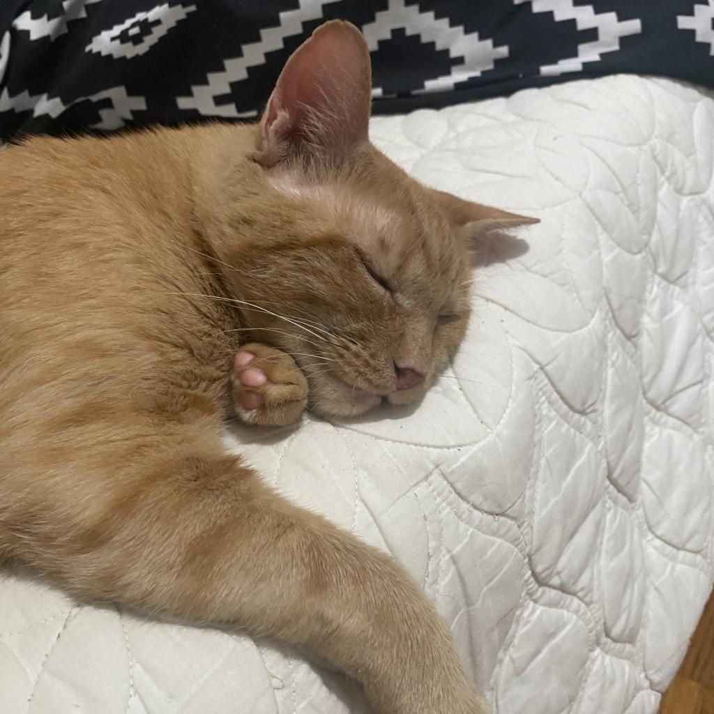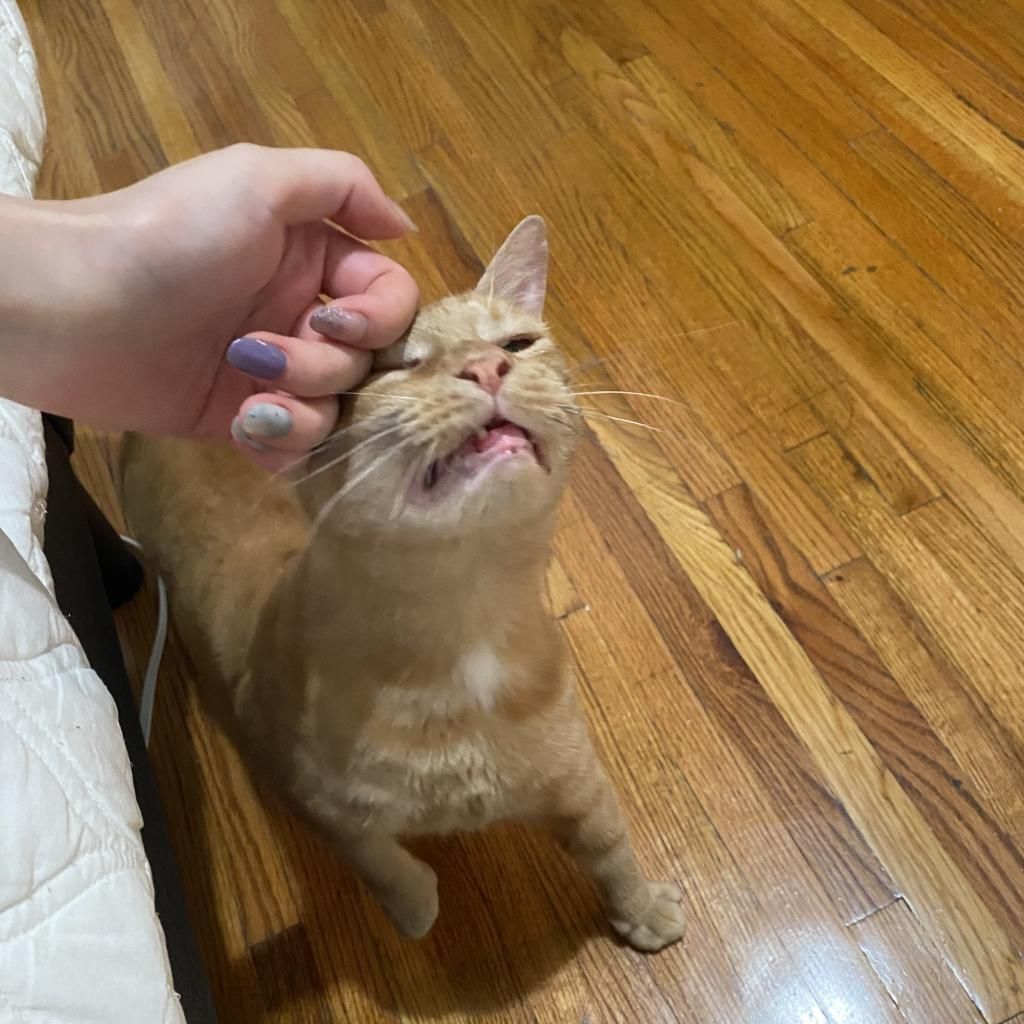 Introducing Mogli, a vibrant 4-year-old male orange tabby! Mogli is bright and sunny with a playful and energetic personality that's sure to bring joy to any household. He loves to chase toys, explore new spaces, and bask in the warmth of the sun streaming through the window. Despite his playful nature, Mogli also enjoys quiet moments of affection and will happily snuggle up with you for cuddles and pets. He is curious, relaxed, quite vocal when he wants something, and affectionate. He likes to play with toys that emulate hunting. He goes bonkers over a stick and string toy with some bait on the end and is fascinated by movement like fans and blowing air. He likes to squeeze himself into tight spaces. He likes to chat, and is a wonderful companion. Mogli loves both to play and receive pets. He will play by himself but also likes you to be involved. He also loves being pet and will come sit next to you or follow you around to ask for pets. He is a loyal and constant companion, you could not ask for a better friend.