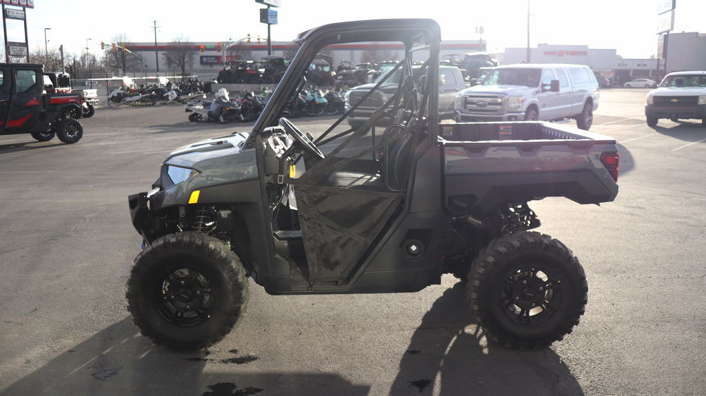 2026 Polaris® Ranger XP 1000 Premium Power Through Tasks and Trails. Features may include: COMFORT Sunup to Sundown Comfort: Ride more comfortably from sunup to sundown, thanks to a tilt steering wheel, contoured seats with back bolsters and a factory-installed roof. Redesigned cab nets offer one-handed operation for easier entry and exit. Extend Your Play Work doesn’t have a curfew. LED headlights provide a bold, refined look while delivering enhanced illumination for those early morning or late-night tasks. In-Cab Convenience: Take advantage of easy-to-access in-cab and under-seat storage for your gear. Place essentials in the dual-integrated glove boxes and keep beverages secure with up to 8 cup holders. Plus, charge your phone with the USB charging port. CAPABILITY Performance With Precision: Stay smooth and controlled on the job or trail, thanks to 3-position throttle control with different drive modes. Choose ‘Performance’ for more response, ‘Standard’ for everyday driving, or ‘Work’ for improved low-speed control. Equipped To Adapt: Adapt to the terrain with three driveline modes: AWD, 2WD, and VersaTrac Turf Mode. For work around the house, use VersaTrac Turf Mode to unlock the rear differential for easier and tighter turns that won’t tear up your lawn. Prepped With Pulling Power: Complete the job or get back on the trail quicker, thanks to the pulling power of a factory-installed 4,500-lb. winch with synthetic rope, autostop, and wireless remote. DURABILITY Enhanced Protection: Boldly navigate obstacles with a rigid one-piece chassis, a redesigned front end featuring a larger front bumper, and a full-body skid plate. Effortless Shifting: Command the driver’s seat with confidence, thanks to the upgraded Gen 2 transmission. It reduces shift effort by up to 50% to easily shift between drive, park, and reverse--delivering a consistent, predictable feel. Sure-Footed Traction: Navigate the toughest terrain confidently with 29” 8 ply Pro Armor tires providing enhanced puncture resistance and a more peaceful cab experience. The 14” aluminum wheels add premium styling to elevate rough rides.