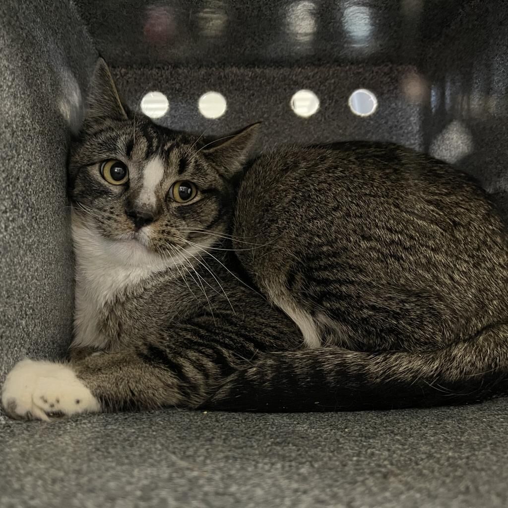 Palmer is a regal little gentleman, gradually adjusting to his new surroundings and beginning to familiarize himself with his fellow feline companions. Independent by nature and occasionally a bit bashful, he prefers to observe the world from the lofty heights of his rafter perch, where he can quietly take it all in from a safe and noble distance. With time, his royal demeanor is sure to charm all who enter his realm.