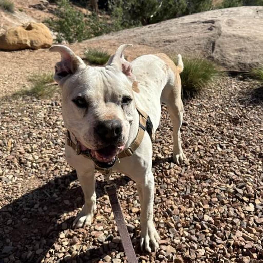Fitz is a true original, rocking his own artistic style with soulful brown eyes, perfect eyeliner, and splashes of color that look like he painted them himself. Full of personality and charm, Fitz has a way of stealing hearts — especially when he settles in close, rests his head in your lap, and soaks up affection like a muse enjoying the spotlight. An adventurer at heart, Fitz loves hiking, scenic car rides, and exploring the world for inspiration. After a day out, he’s perfectly content relaxing with his people, mixing in the occasional burst of zoomies for creative flair. Loyal, affectionate, and endlessly expressive, Fitz is ready to bring a little art, a lot of love, and plenty of smiles into your life. Come meet this one-of-a-kind masterpiece!