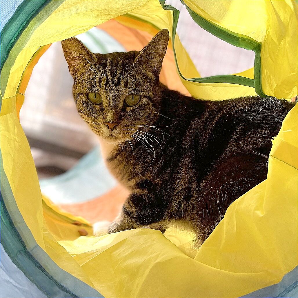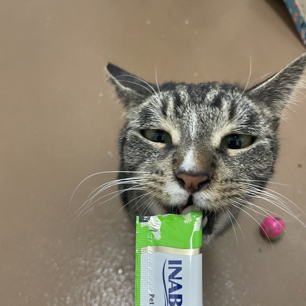Kisser is a spitfire. Meet this spicy little cat, full of personality and charm! While she can be a bit sassy at times, she's hard at work refining her behavior. With a love for tasty Churu treats, she's eagerly participating in clicker training to improve her communication skills. Every session is an adventure as she learns new tricks and grows more confident in expressing herself. She's got the energy and spirit to keep you on your toes, but with a little patience and lots of treats, she’s well on her way to becoming the purrfect companion!