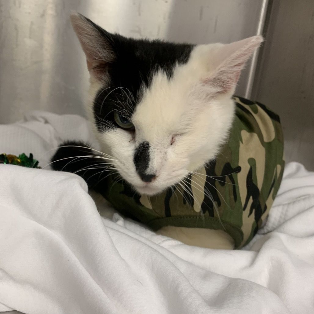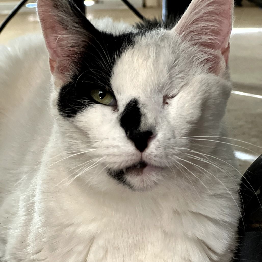 Armstrong is a truly exceptional cat. After a rough life on the street, battling health issues and requiring the removal of one eye, he wasn't sure he could ever trust humans again. But with patience and a thoughtful approach, he started to be open to the idea. Today, Armstrong is a "velcro" cat who wants to be in your lap all day. He bonds super strongly, and once he commits, he'll do anything to be with his person. If you are willing to take the time it takes, you'll be getting a loyal, funny, floppy cat of a lifetime. He's also great with other cats! Please reach out to learn more about Armstrong.