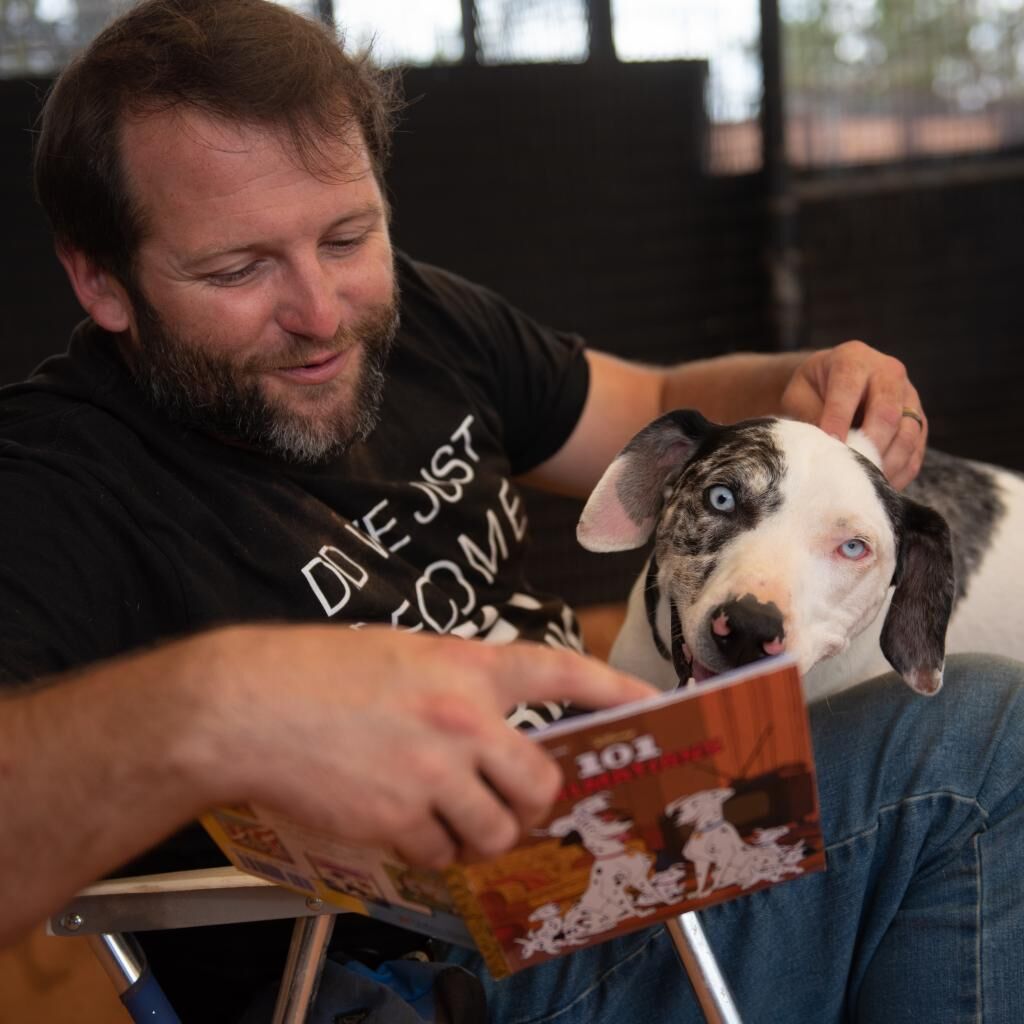 Frankie is a happy, handsome dude who absolutely loves people and soaking up affection. He enjoys cozy hangouts, relaxed downtime, and even story time on warm days when it’s nice to slow things down and just enjoy each other’s company. Frankie’s favorite things include treats (especially treats), toys, water fun, golf cart rides, and settling into his crate for some well-earned relaxation. Full of personality and endless cuteness, Frankie is more than ready to share his love and joy with a family of his own. Reach out to meet Frankie and fall in love today!