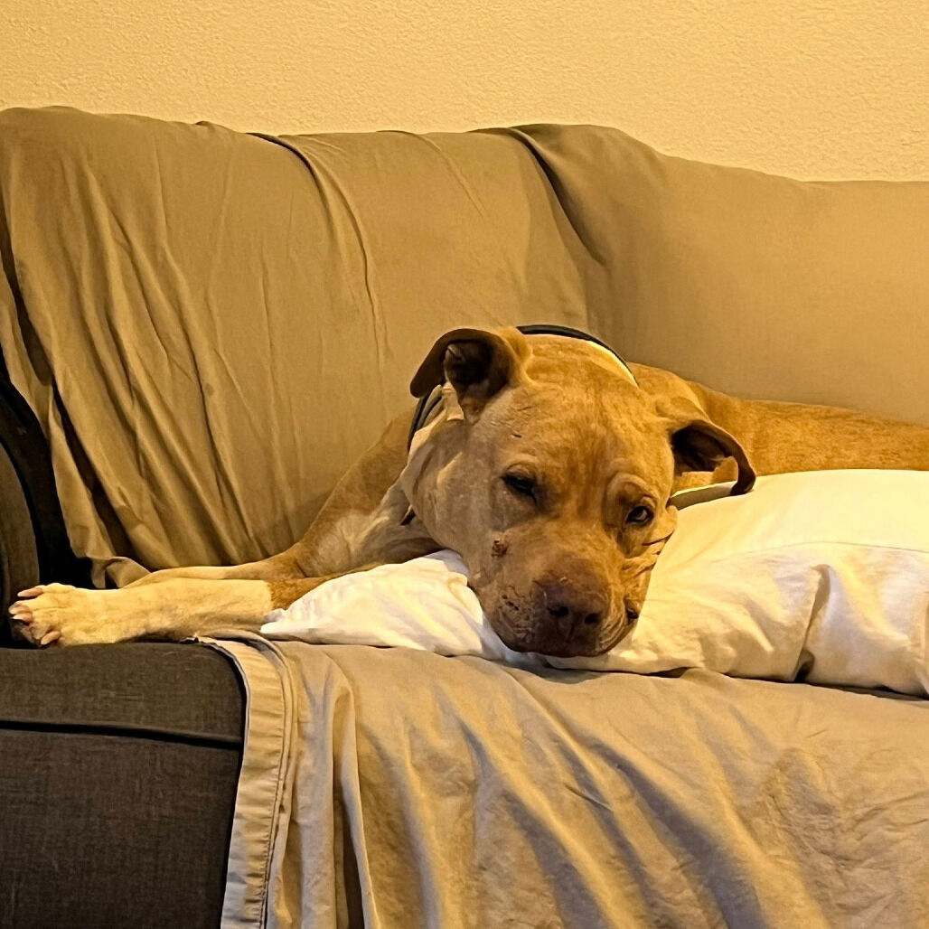 Hi, meet Rico — a big, goofy, love-soaked pup with one mission: find his human(s) and never let them watch TV alone again! Rico’s ultimate favorite thing? Car rides! He’s all about the wind in his face, ears flapping, nose sniffing a thousand smells a minute. Windows down? Count him IN. That being said, if Netflix and napping were Olympic sports he would be taking home gold. Think you can handle all this charm and cuteness? Rico’s ready to ride into your heart!