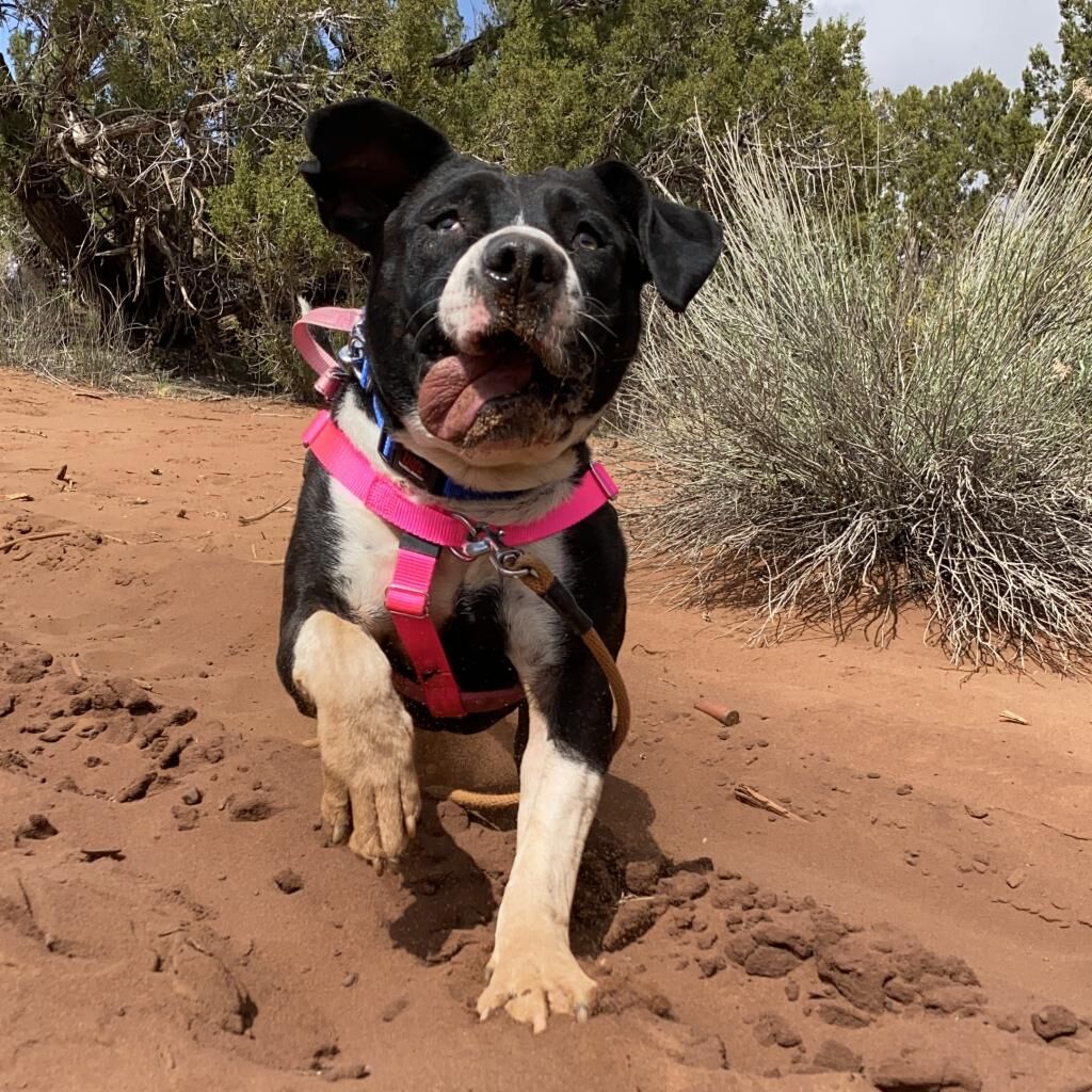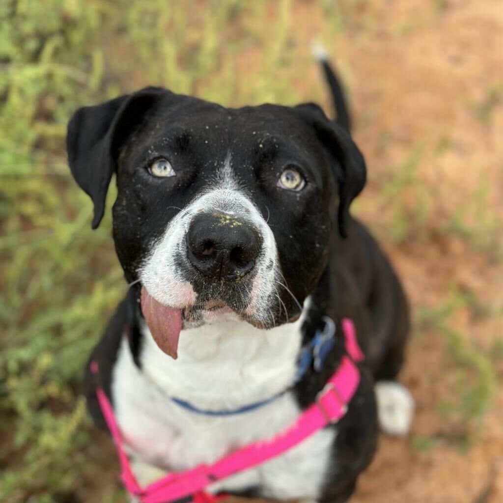 Meet Eloise, the girl who makes every day Tongue Out Tuesday! Eloise has a signature look that’s impossible to resist: her goofy tongue happily hanging out, showing off her playful personality and big heart. She’s full of love, charm, and endless energy, ready to bring joy and laughter wherever she goes. This fun-loving girl is up for just about anything, whether it’s hiking through the trails, splashing in the water, or lounging on the couch by your side, Eloise is happiest when she’s with her people and part of the action. If you’re looking for a spirited, affectionate, and one-of-a-kind companion, Eloise is ready to steal your heart, tongue out, of course. Fill out an application today and make every day a little brighter with this lovable goofball!