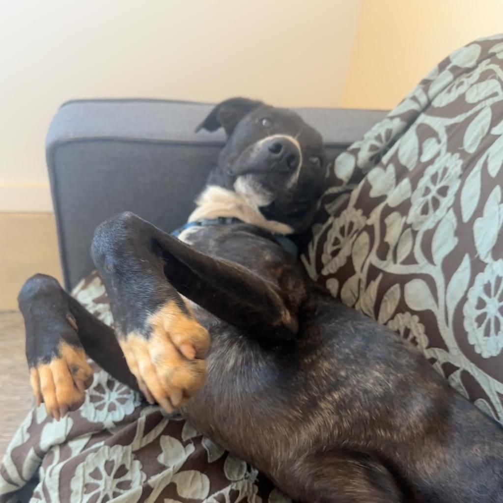 Meet Melon, a sweet love bug who will absolutely sweeten your life. Melon is ready to accompany you on any adventure your heart desires. Even if you're not up for a big adventure, Melon will be more than happy to play fetch or just hang out with you on the couch. If you're looking for a loving companion who can bring endless joy to your home, whether it's through playtime or quiet moments together, Melon is the perfect match for you. Come meet her today and see for yourself!