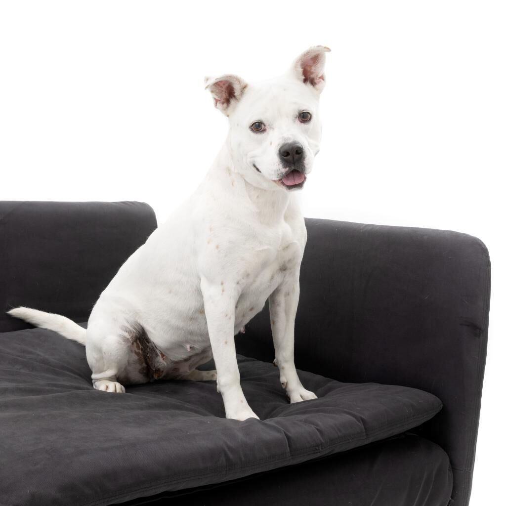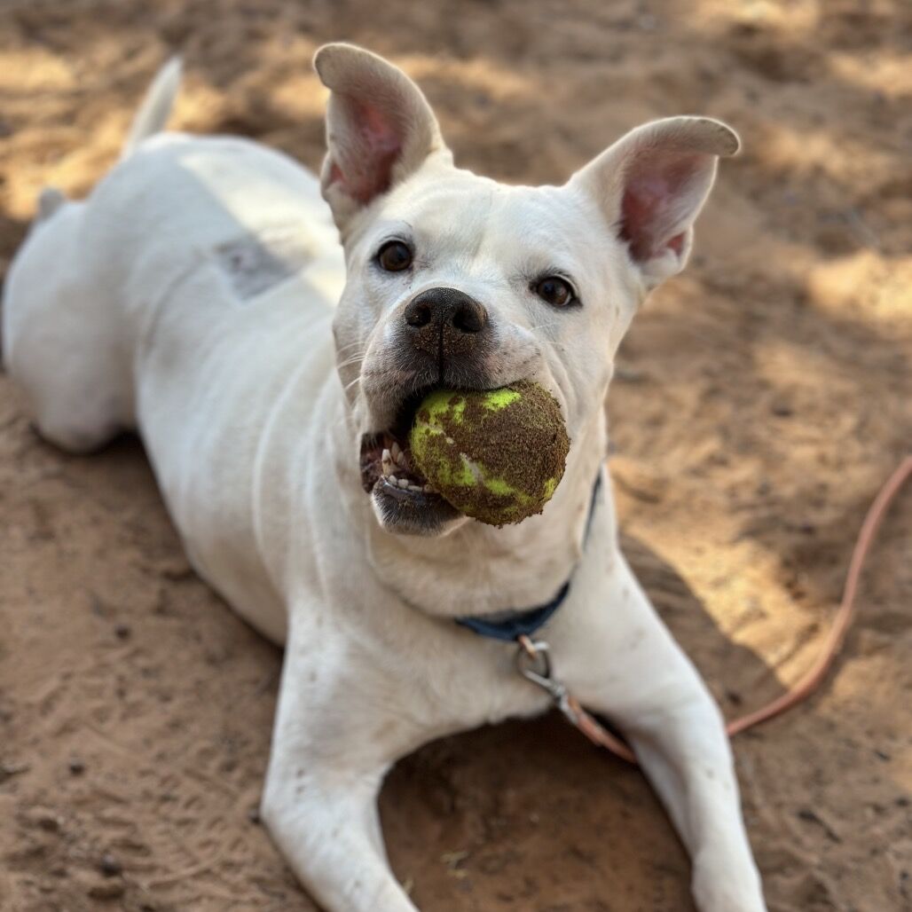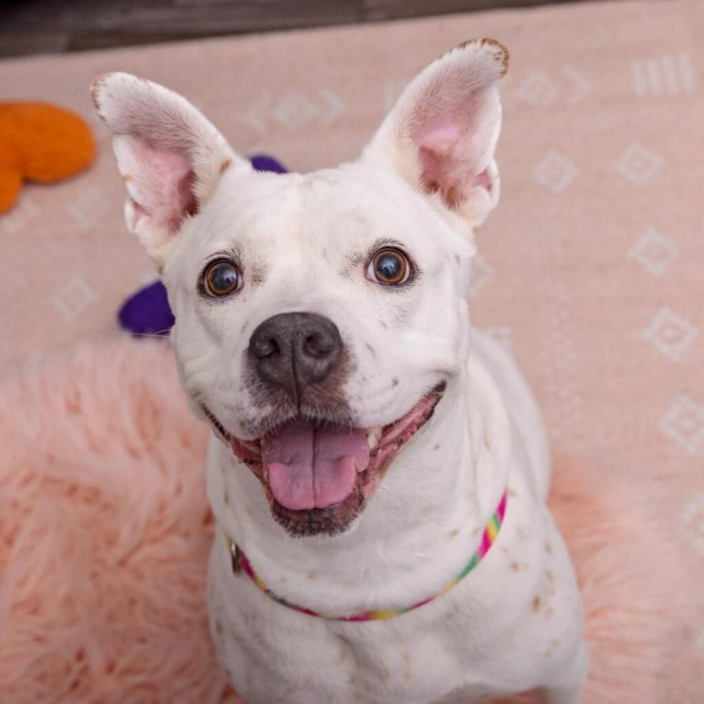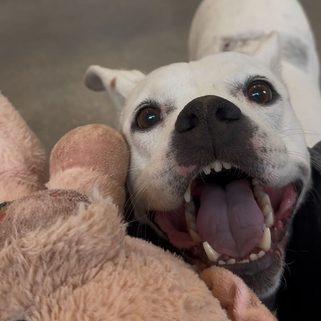 If you’re looking for a bundle of joy wrapped in wrinkles and squish, Patti Mayonnaise is your girl! This short, stocky sweetheart is basically a living, breathing stress ball with four legs and a giant heart. Patti is an all-around people lover—if you’ve got hands for petting or a lap for lounging, she’s already your biggest fan. She’s equally obsessed with doggie playtime and can often be found wrestling with her furry friends or dramatically flopping onto her back mid-zoomie for a good roll in the grass. She’s got a go-with-the-flow attitude when it comes to adventures—whether it’s a walk around the block or a car ride to nowhere, Patti’s just happy to be included. And when the fun winds down, this wrinkle queen is more than content to sprawl out and relax in the nearest cozy spot. Patti Mayonnaise is ready to be your best friend. Come meet her!