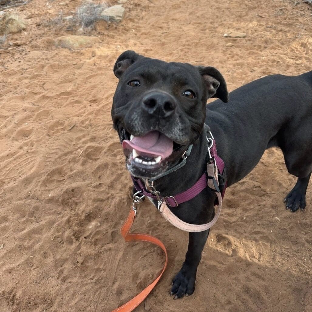 True to her name, Smiles lights up every room (and trail) with the best grin around. This energetic, fun-loving girl is always ready to go — whether it’s hiking up a mountain, sprinting after lizards, or playing games in the yard. Her smile will always show. Smiles came to us seeking refuge from the LA fires, and despite the uncertainty she’s faced, her spirit has remained unshakably bright. She loves people and thrives on connection, always ready for belly rubs, games, and quality time with her favorite humans. If you’re the adventurous type looking for a hiking buddy with a contagious zest for life, Smiles is your girl. She’s proof that even in hard times, joy finds a way — and she can’t wait to share hers with you.