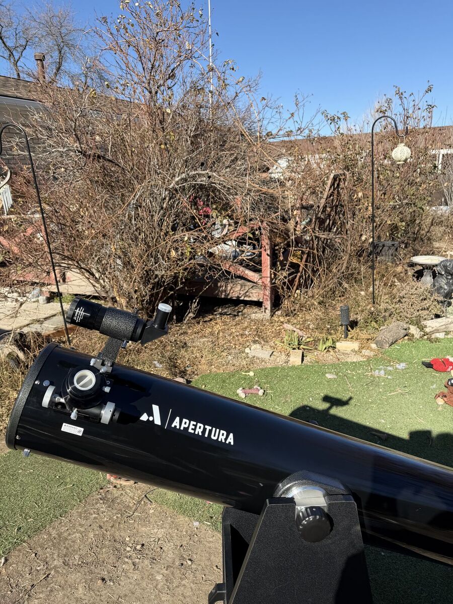 Apertura AD8 Dobsonian 8" Telescope with accessories : two eyepieces, a 1.25" adapter to accept both 2" and 1.25" eyepieces, a laser collimator, cooling fan, 1.25" moon filter