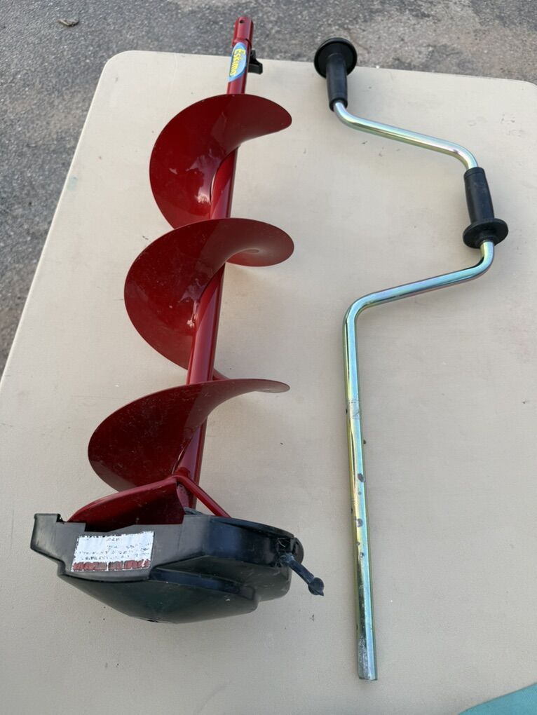 Eskimo. Ice Auger. Like New Folds in Half for Travel Total Length 64”. Folds. 32” Good Blades also Blade Protector See Pics