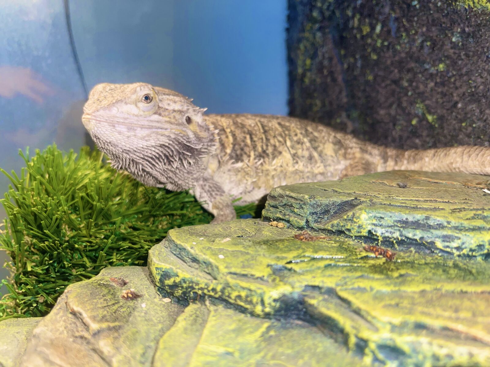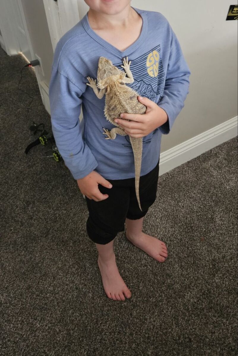 This is my sons bearded dragon, Spike. We have had spike since he was little, and he is extremely socialized, tame and friendly. Hes coming up on 4 years old. He's gone on a lot of adventures with us and has been a real joy. (We aren't totally sure if spike is male, but regardless he's been a wonderful pet). We are moving next Month and believe it's best for spike to find a forever home with a new family. He will come with his cage, (3ftx2ft) and his lamp. The top of the cage screen has slight warping from the heating lamp but it doesn't affect functionality at all. We also have additional cage decor we can add. Delivery is possible if within reasonable distance. Asking $100obo for everything, but we just want him to have a good home so open to negotiation.