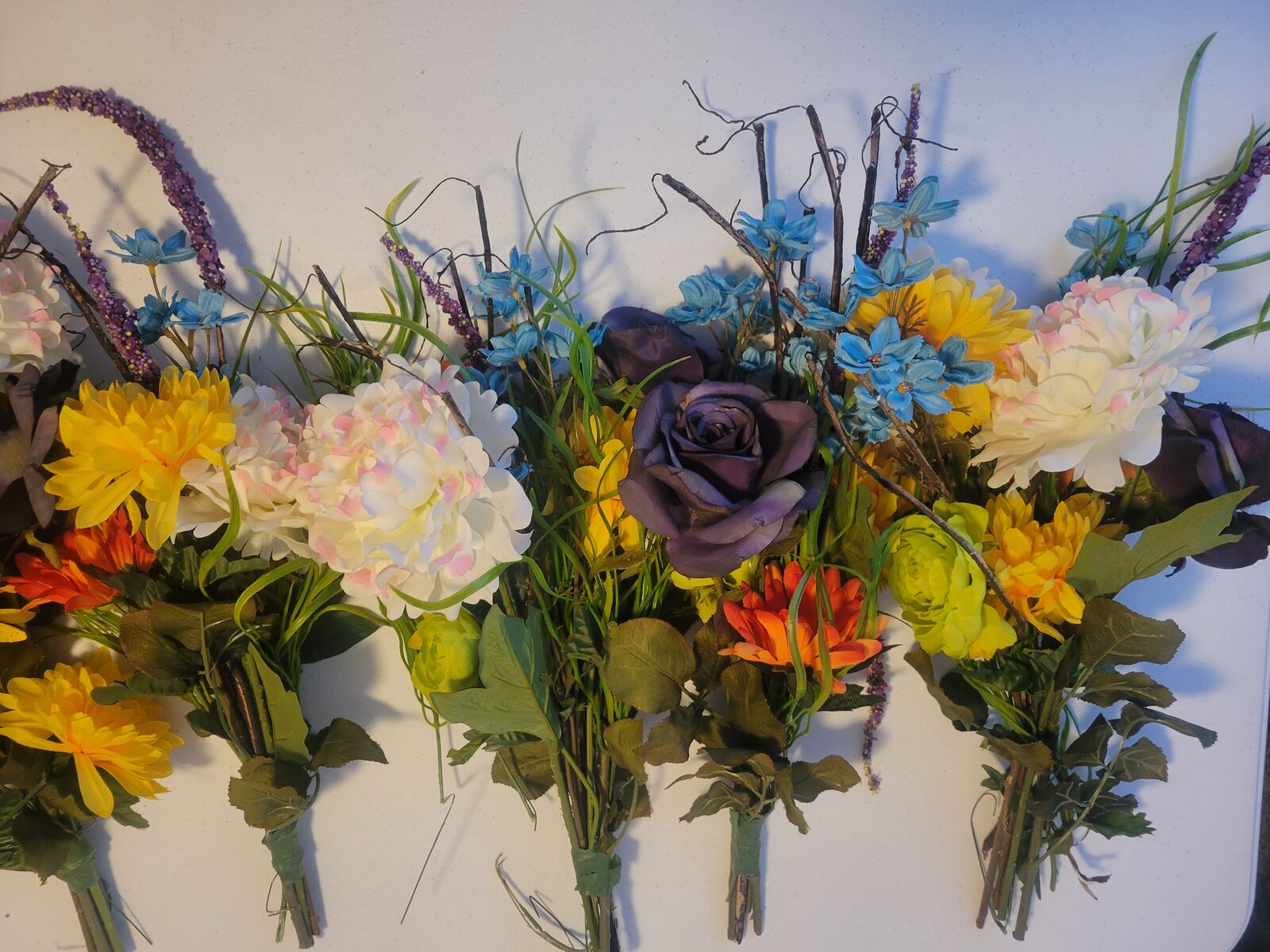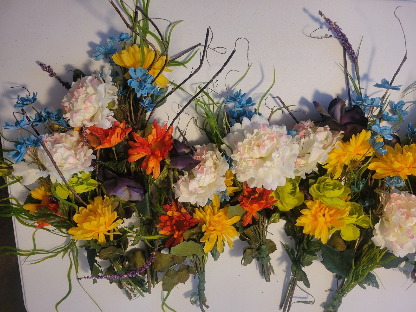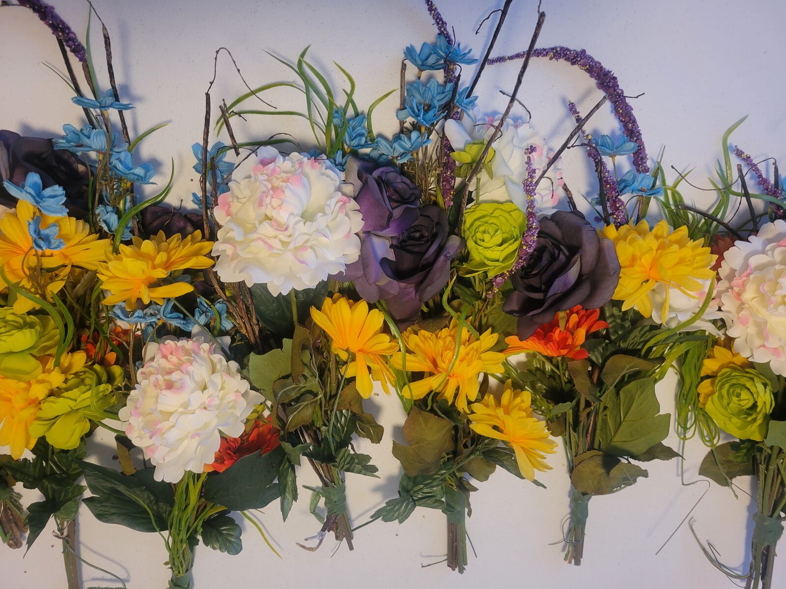 Twelve bouquets, all about 12"-15' tall. CASH ONLY, no Venmo.