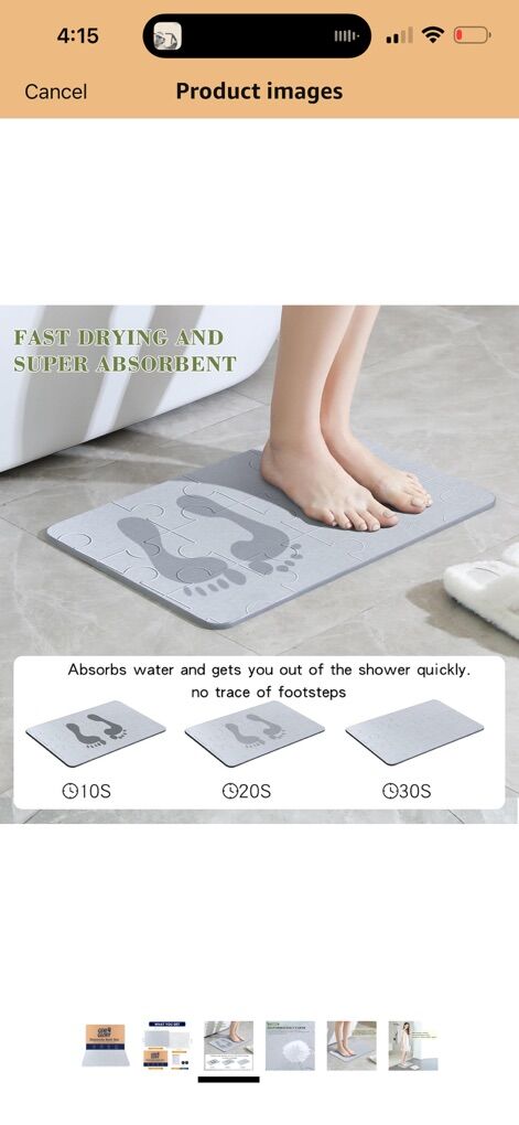 Stone Bath Mat, Upgrade Natural Diatomite Earth Super Absorbent Mat for Bathroom, Quick Drying Non-Slip Stone Shower Mat 23.6 x 15.4 Light Grey