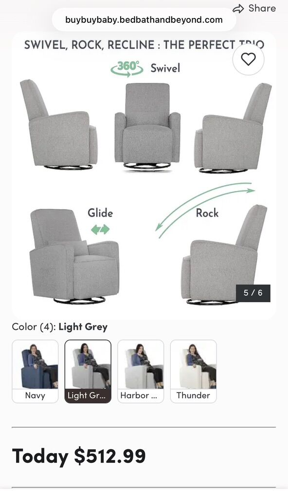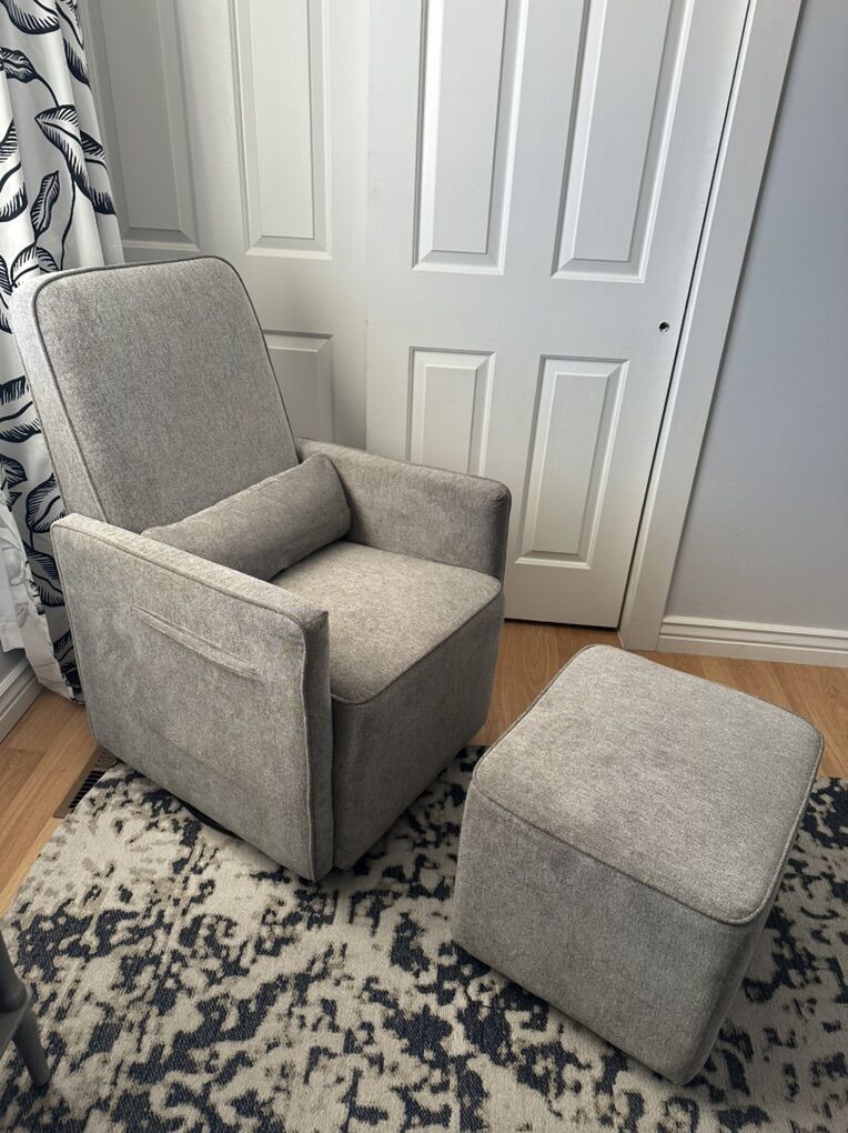 This sleek glider rocking chair is in perfect condition. We changed my sons room from a nursery to a toddler room and no longer need this.