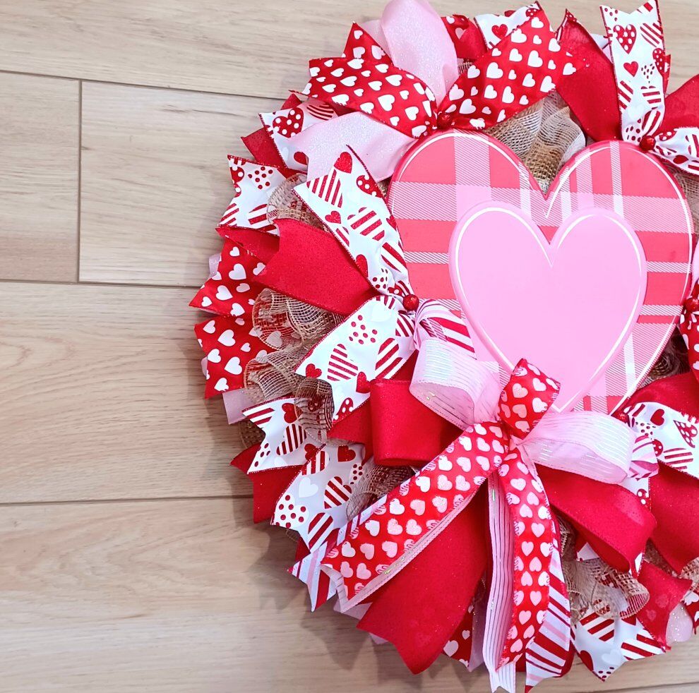 Express your heart to the one you love with this super cute handmade 24" Valentine's Wreath with lots of ribbon and a cute sign ready for display from a smoke free home. I can customize and ship. Just ask!!!