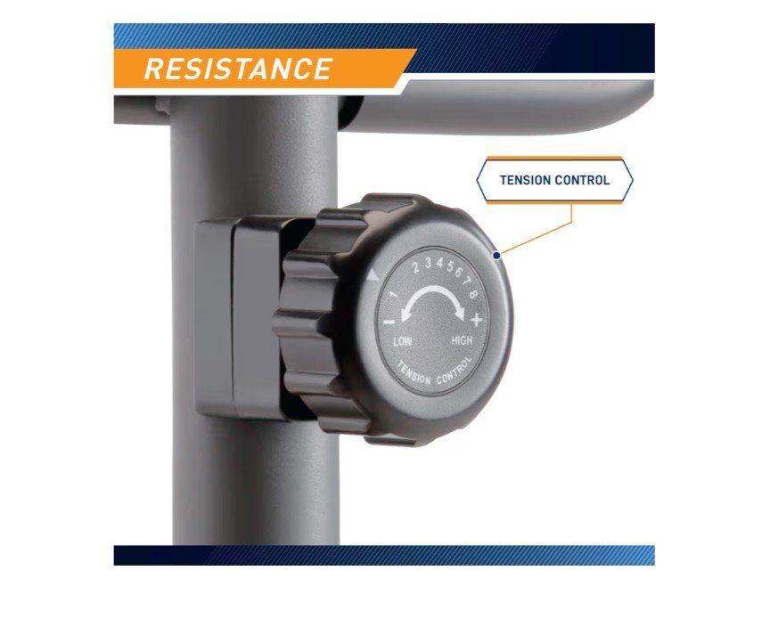 SMOOTH MAGNETIC RESISTANCE SYSTEM –Designed for fitness enthusiasts of all skill-levels and comes with a magnetic resistance mechanism with 8 levels of difficulty. Tension knob simulates different terrains to customize routines according to fitness level.