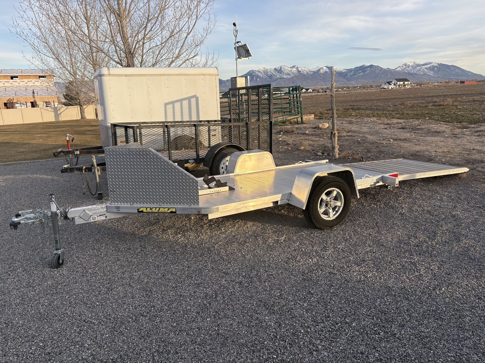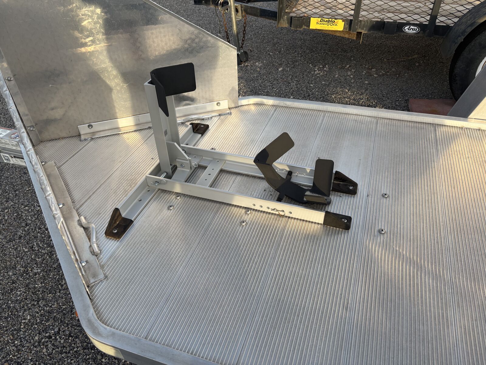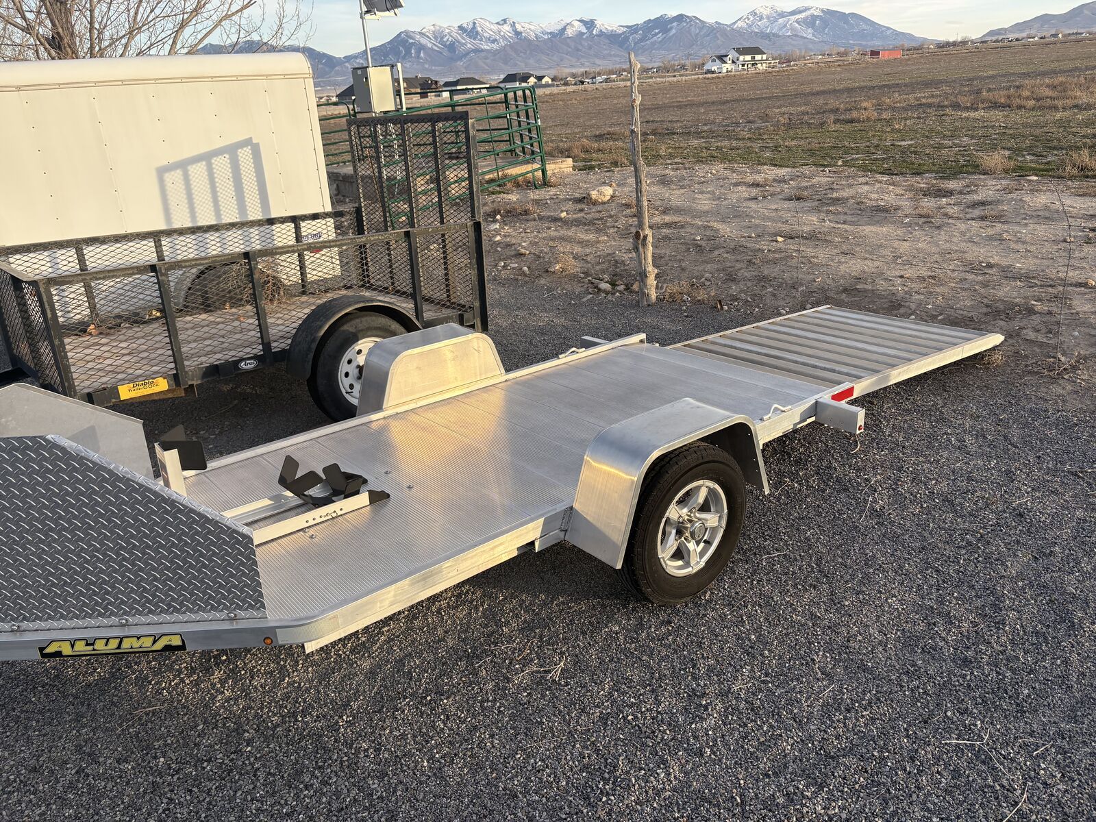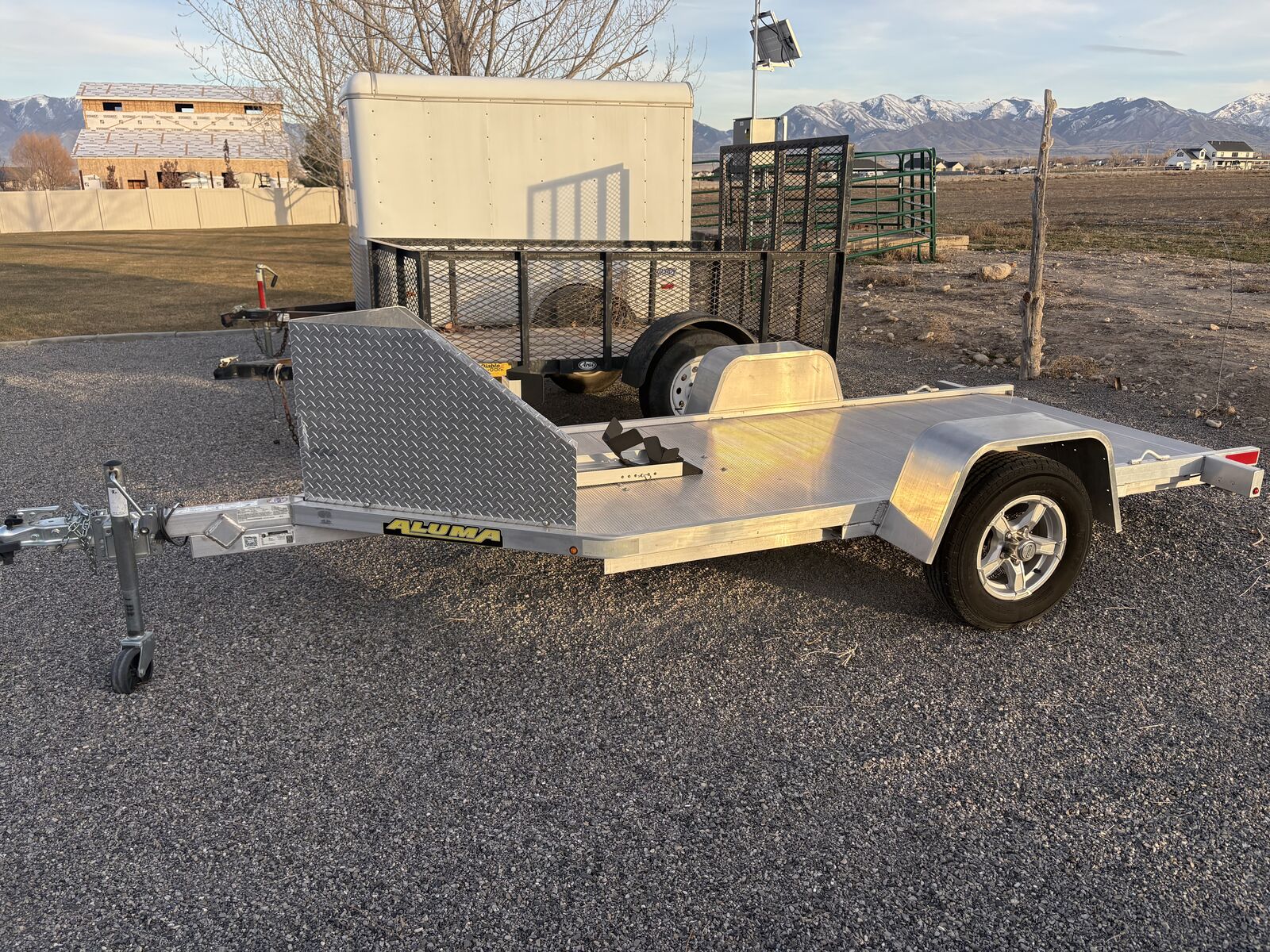 PayPalAluma 6x10 motorcycle trailer with ramp. Pit Stop/Trailer Stop wheel locking chock, not the cheap version that comes standard on this trailer. Comes with spare tire. Perfect/New condition. Firm on price.
