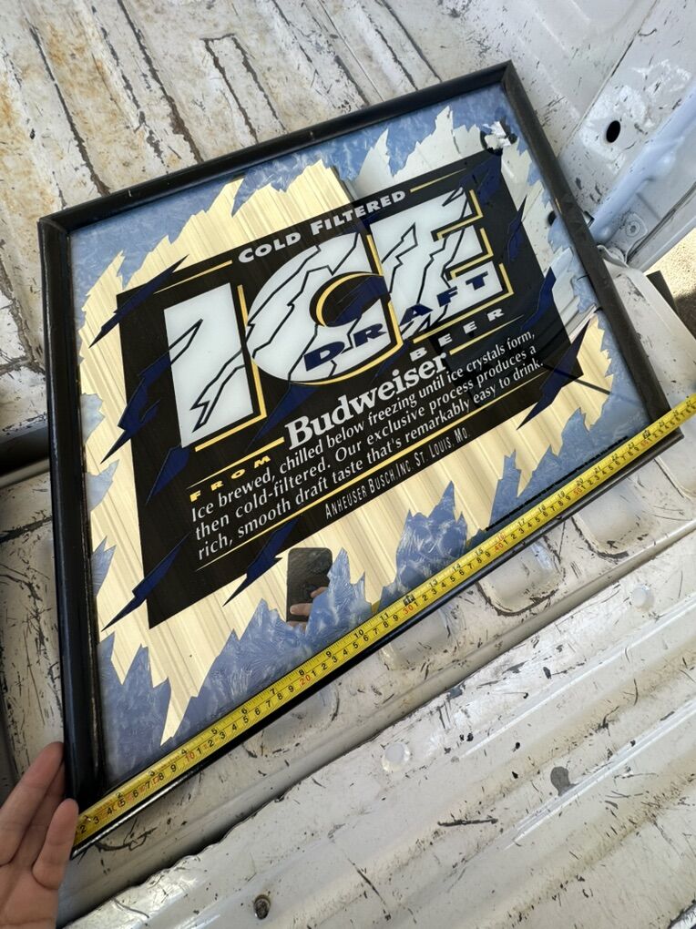 Venmo1994 Budweiser Cold Filtered Ice Draft Beer mirror signs. Sold as a set, frames are showing some sign of wear. Overall great shape, great for a man cave or garage $200 OBO