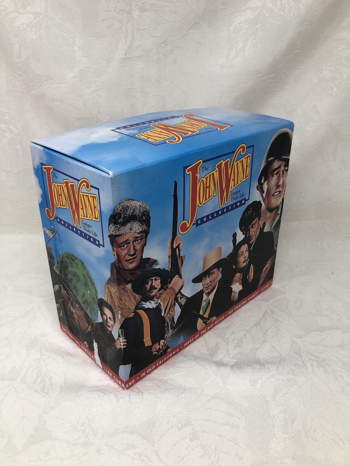 The outer case shows some cosmetic wear, as shown in the photos, but remains structurally solid and in good overall condition. A great collectible set for John Wayne fans, classic Western enthusiasts, or VHS collectors.