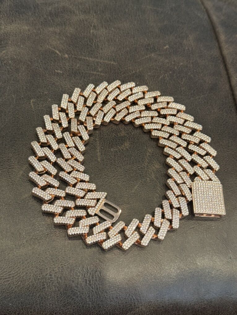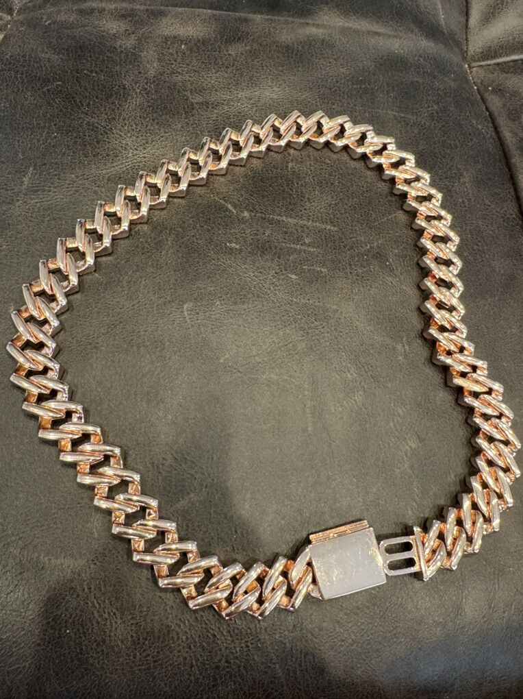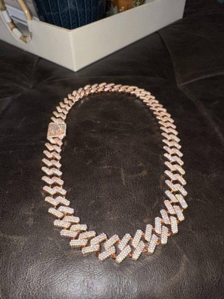 ApplePayMiami Cuban Link Chain 18mm Cz 14k Rose Gold Plated 24 Inch in excellent condition.