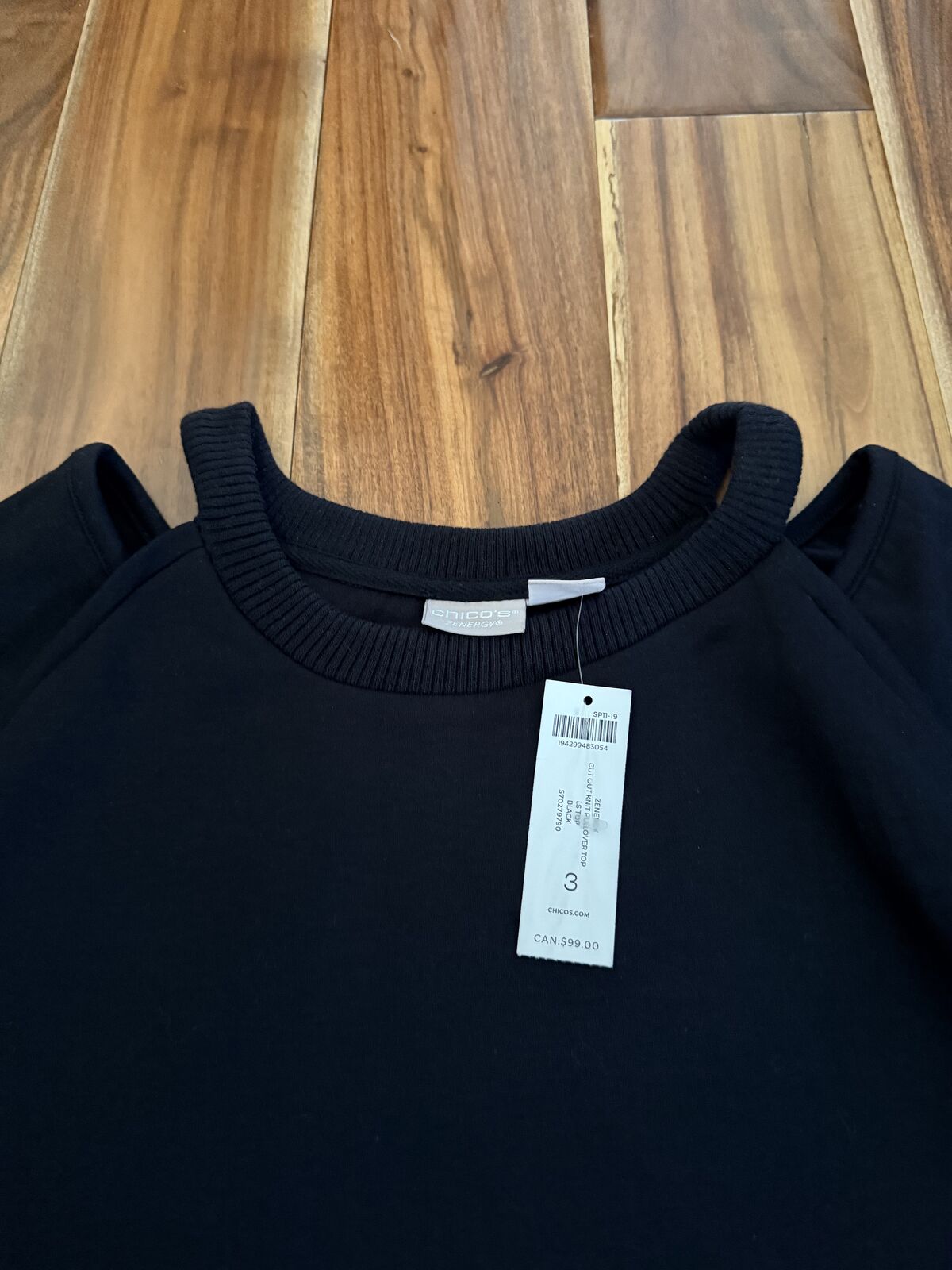 VenmoThis is a women’s black cut out seater. It is a size 3 Chicos brand sweater. (Or women’s size XL). It is a very soft material and comfortable sweater to wear.
