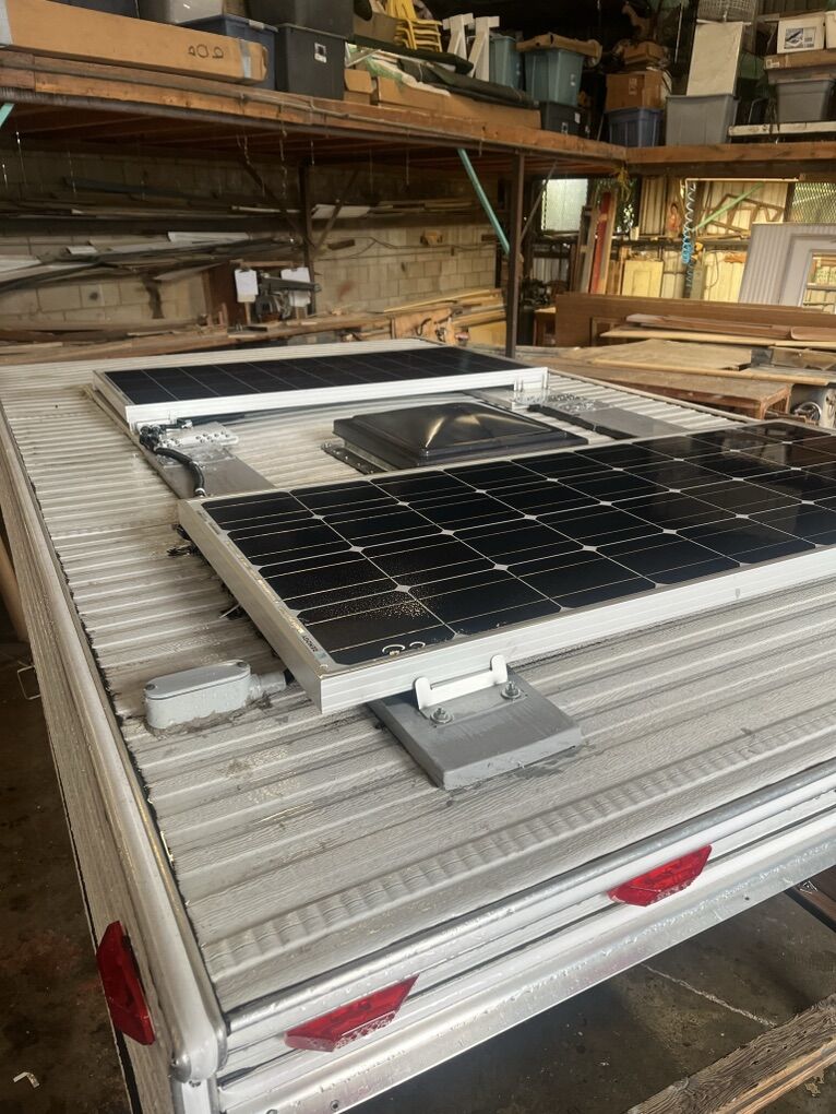Length 6’ width 59” $2,000 obo Solar panels on the roof, electrical plug on the side Good little camper need gone asap