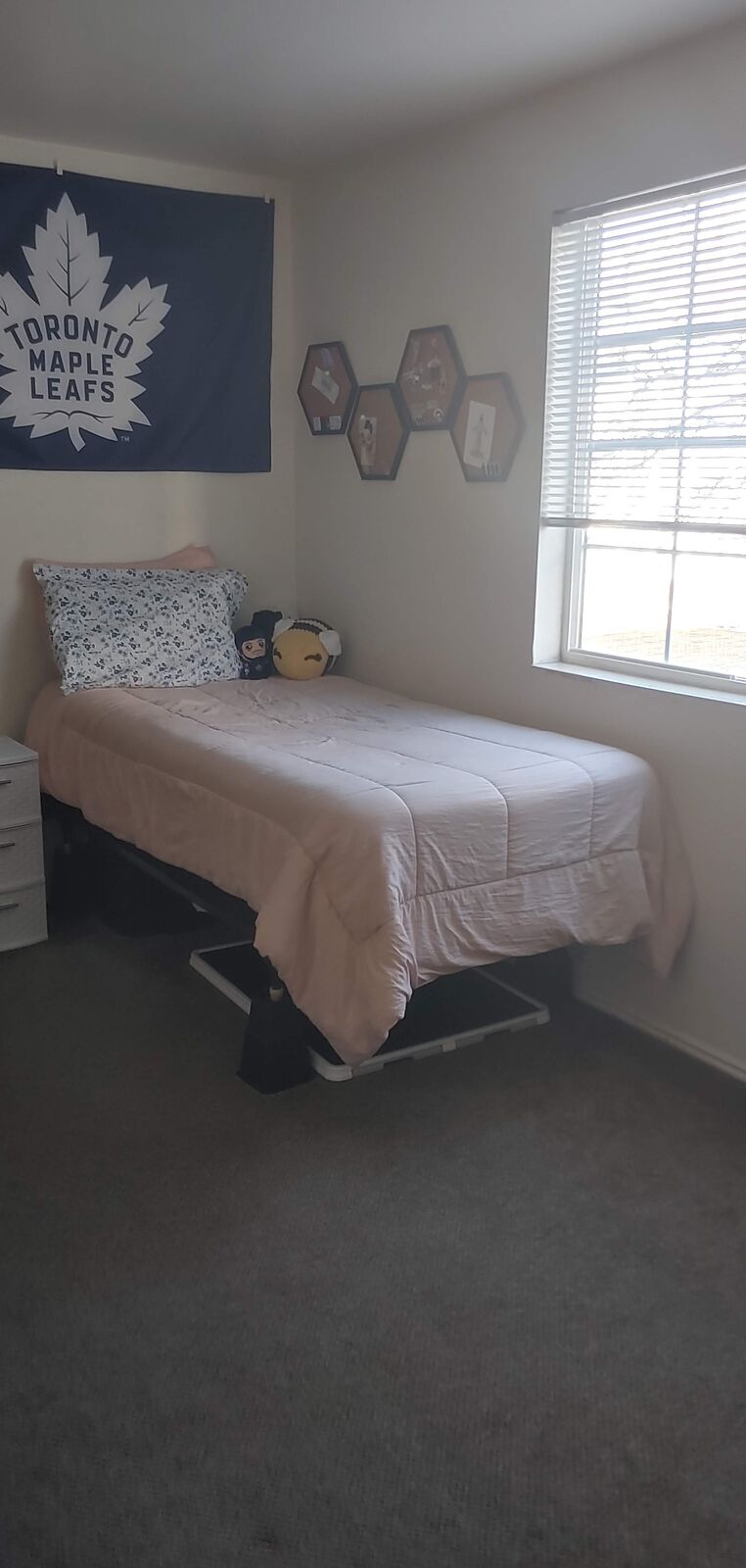 I’m selling my Spring/Summer contract for a private room at Carriage Cove! I am in Bedroom 3 as shown in the apartment layout image. Rent is $515/month, which includes internet and water. Utilities are around $20/month (gas and electric). The complex has a shuttle that goes directly to BYU Campus, and there’s a public bus stop across the street with service to UVU, making it a great off-campus location. The apartment has four private bedrooms, each tenant has their own private vanity area and shares a bathroom with one roommate. The apartment is fully furnished, including a bed, dresser, desk, and chair in the bedroom, plus furnished living room and kitchen. There is also a second fridge and plenty of storage space. Amenities include a volleyball court, basketball court, private study rooms, fitness center, game room, and a pool/hot tub. My lease ends in August, with the option to renew. I’m looking for someone to take over the contract as soon as possible, with move-in available May 1st (flexible). May's rent will already be paid!! Please message me with any questions!