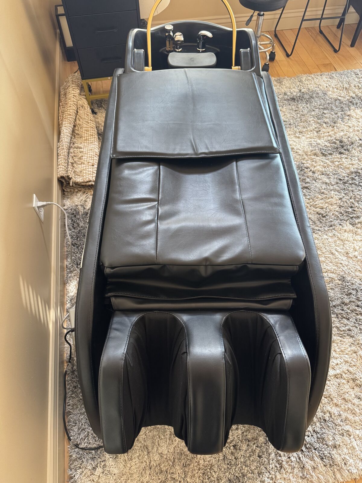 VenmoUsed lightly for less than a year. It has a built in back massage and heat feature as well as leg massage. It also works great for washing hair and not getting water running down the other persons back.