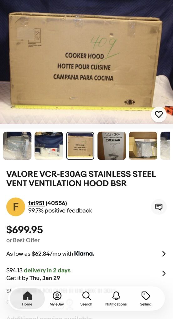 VALORE VCR-E30AG STAINLESS STEEL VENT VENTILATION HOOD