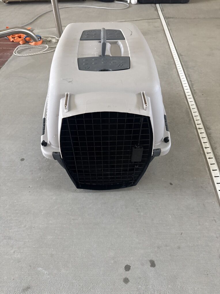 VenmoMedium size dog/cat kennel. 26 inches long x 17 inches wide x 17 inches tall. Wire door and latching working properly. Great condition and clean!!!!