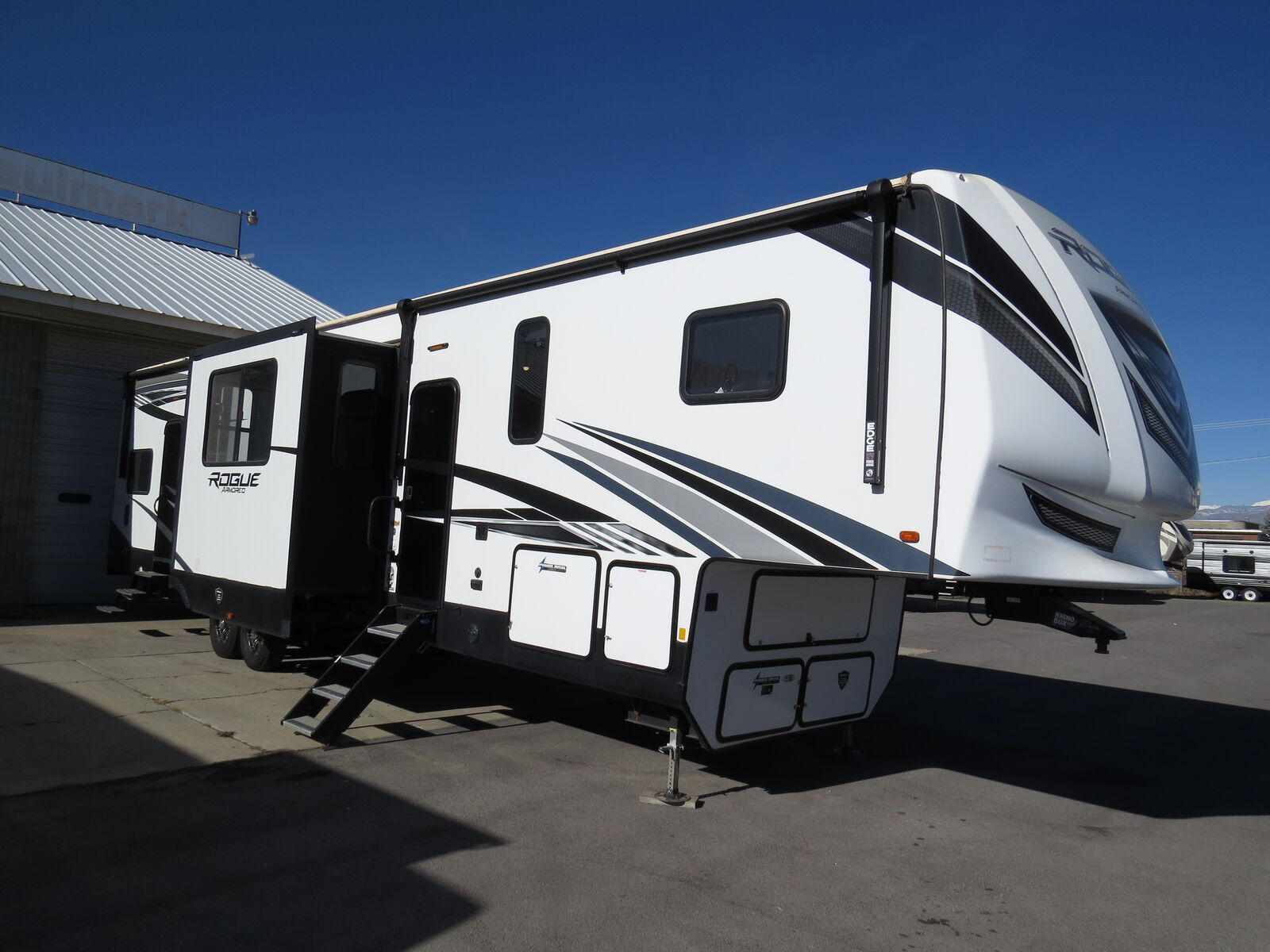 15' 6" Separate Garage!, 3 slides, Generator 5500 Watt, Fuel station, Kitchen & Fridge SLIDE! Big Couch Slide, Lots of storage, Rear Pull down bed and bench seats against the wall, (Bottom bed makes into Booth Dinette), Front KING Bed with wardrobe slide, Double Electric patio awnings, Fiberglass exterior, (2) A/C units and Heat. Location: 50 S Frontage Rd, Springville Dealer#832B Quality RV -Financing Available-