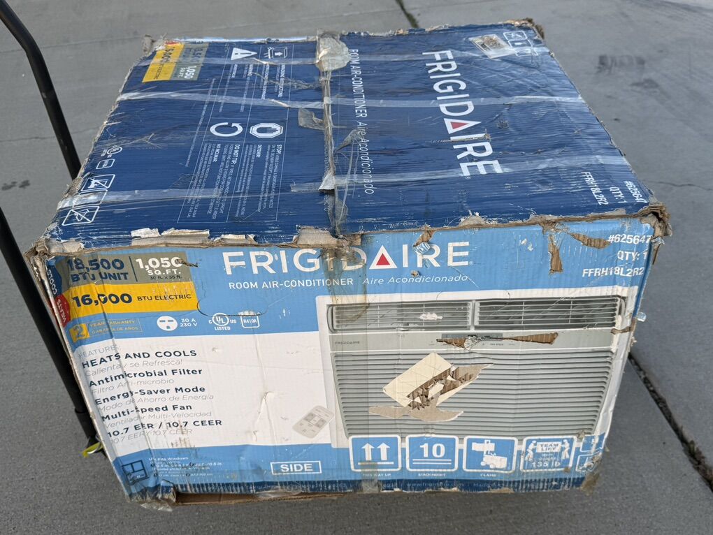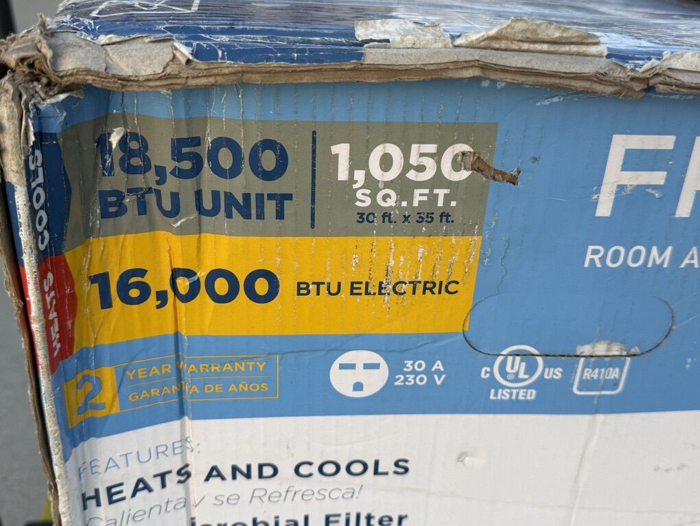 Frigidaire 1050-sq ft Window Air Conditioner with Heater (230-Volt; 18500-BTU) Used only one week No remote control included Cools rooms up to 1050 sq ft and provides supplemental heat when needed