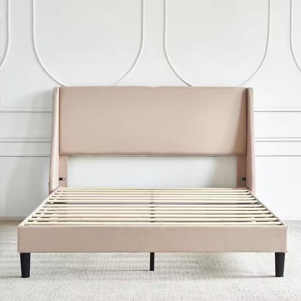 Assembly Required. Bed Frame Material: Metal. Box Spring Required: Box Spring Not Required. Color Family: Beige. Color/Finish: Beige. Finish Family: Other. Furniture Features: Upholstered. Headboard Mount Type: Bed Frame Mounted. Interior Furniture Type: Platform Bed. Material: Wood. Number of Pieces: 1. Product Weight (lb.): 76.7 lb. Size: Full. Total Weight Capacity (lb.): 800 lb. Upholstery Material: Linen. Platform Height (in.): 11.8 in. Product Depth (in.): 76.8 in. Product Height (in.): 44.1 in. Product Width (in.): 57.1 in. Box Spring Not Required. Bed Frame Material: Metal. Size: Full. Headboard Mount Type: Bed Frame Mounted. Upholstery Material: Linen. Finish Family: Other. Furniture Features: Upholstered. Total Weight Capacity (lb.): 800 lb.