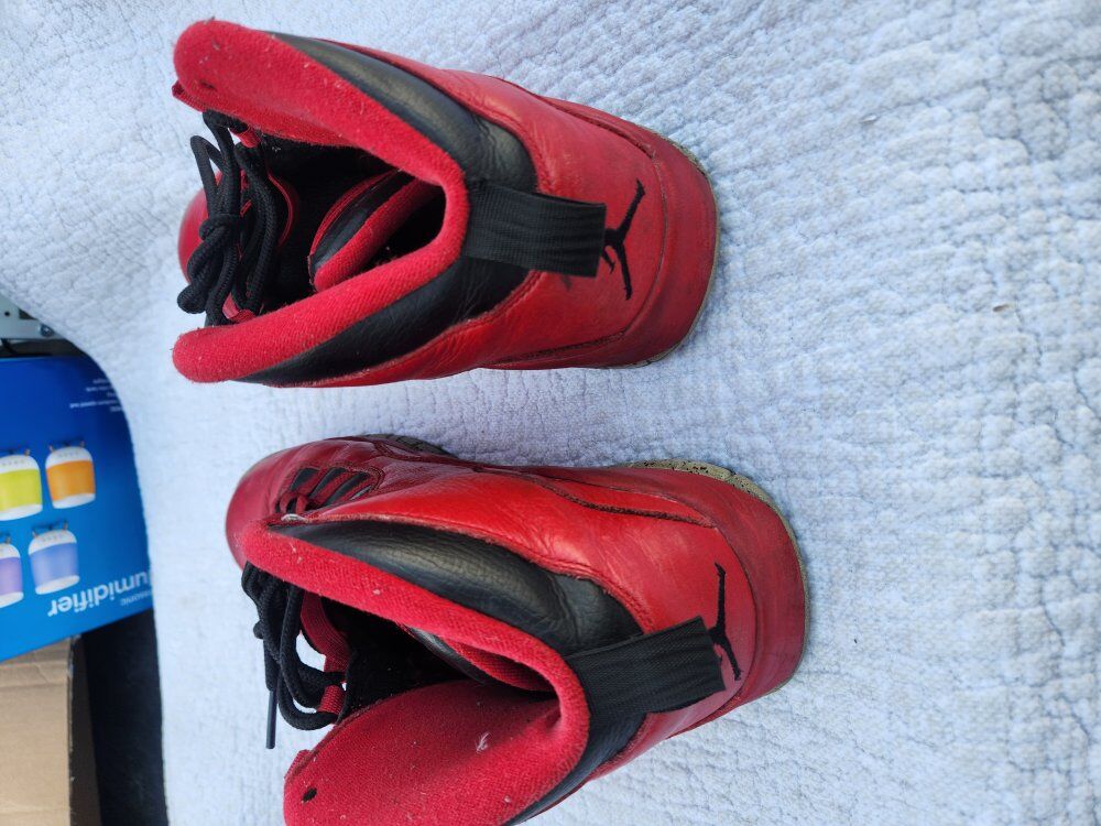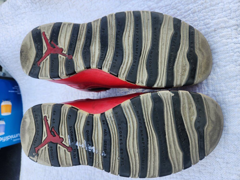 Air Jordan 10 Retro "Bulls Over Broadway". This model was released on February 14, 2015, to celebrate the 30th anniversary of the Jordan Brand. Product Details Brand: Nike / Jordan Brand Model: Air Jordan 10 Retro "Bulls Over Broadway" Colorway: Gym Red / Black - Wolf Grey Style Code: 705178-601 (Men's) or 705179-601 (Youth/BG) Original Release Date: February 14, 2015 Features: The shoe has a leather and nubuck upper, a Phylon midsole with an encapsulated Air-Sole unit, and a rubber outsole that lists Michael Jordan's early career achievements in different colored stripes.